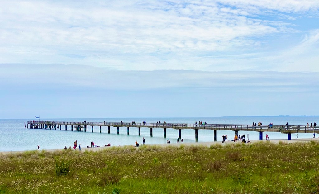 Klützistä Boltenhageniin oli kahdeksan kilometrin pyörämatka. Otimme siis pyörät alle lämpimänä sunnuntaiaamuna ja pyöräilimme hyvää pyörätietä Boltenhagenin suosittuun rantakylään. Kirkon mäelle tullessa hämmästyimme, miten moni muukin oli tullut paikalle pyörällä.