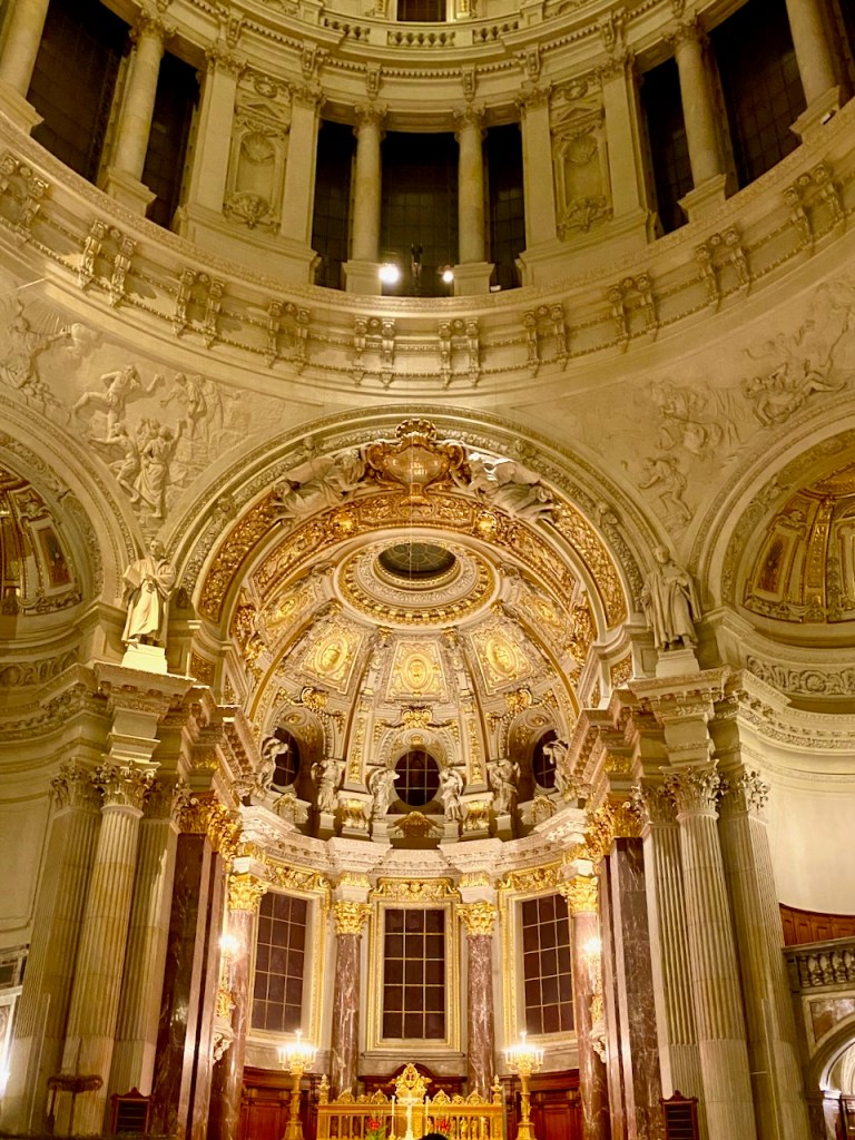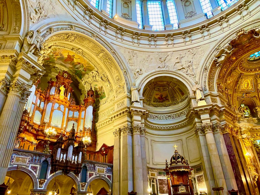 Jatkoimme suomalaisen seurakunnan tavattuamme metrolla Berliinin tuomiokirkkoon, koska ajattelimme, että myös siellä sisällä olisi kiva käydä jälleen. Viimeksi täällä käydessämme valofestivaalien aikaan täällä oli värikäs konsertti.