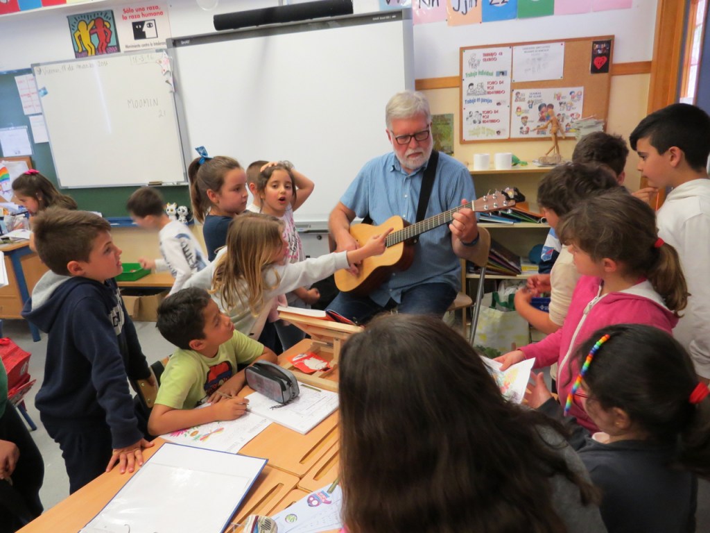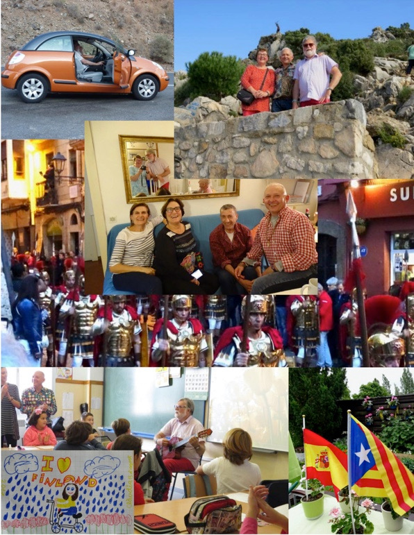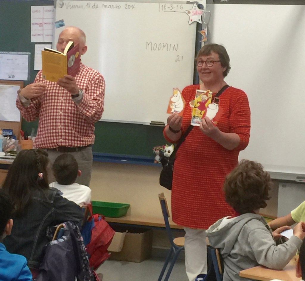 Meidän muukin aktiivisuutemme Espanjassa mainittiin perusteluissa. Juha on villinnyt espanjalaiskoululaiset kitaransoitolla, tiptapilla ja muumilauluilla jo montakin kertaa, ja itse olen päässyt näyttämään Suomi-kuvia ja kokeilemaan espanjantaitojani: