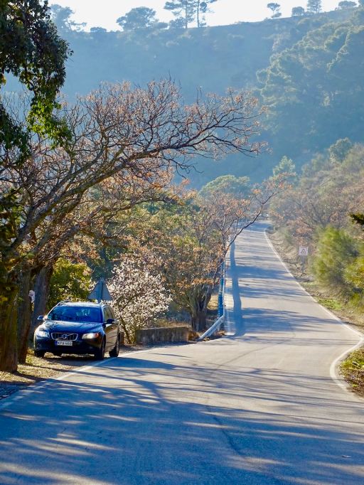 Colmenarista pois ajaessa aika pian löytyy muutama sopiva pysähtymispaikka, joista voi vielä kurkistella rinteille. Kun tullaan Malagan vuorten kansallispuiston alueelle, pientareet alkavat olla ahtaampia.