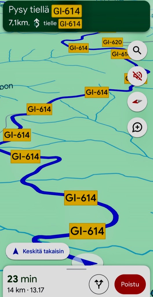 Onneksi kapealla tiellä oli kuitenkin pari pientä levennystä, jolle pystyi auton pysäyttämään kuvaa varten. Tältä näyttivät maisemat.