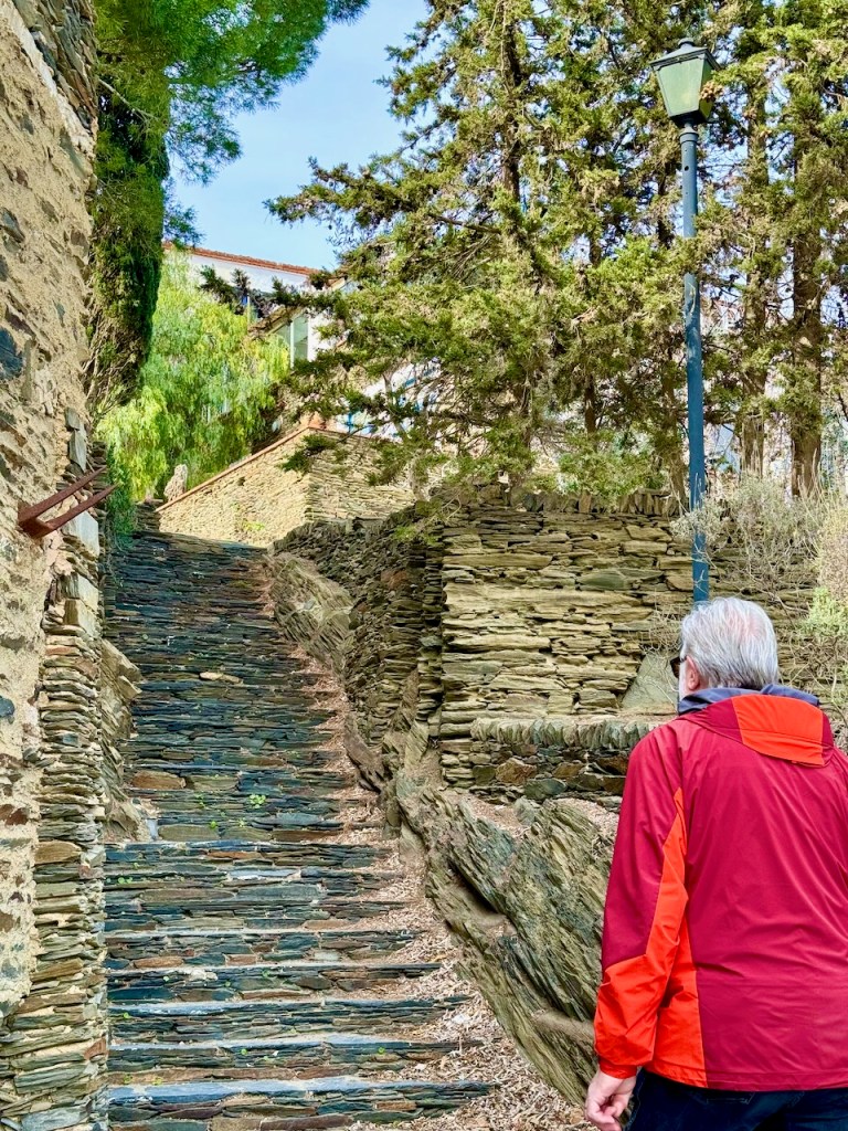 Noiden valkoisten portaiden kohdalla törmäsimme sitten pettymykseemme: Dalin kotimuseo olikin kiinni. Ei ollut vielä turistiaika. Onneksi olimme käyneet täällä jo kodinvaihtomme aikana, eli muistot ja kuvat olivat. Kirjoitin tästä kokemuksestamme oman tekstin. Paikka on ehdottomasti käymisen arvoinen, lue teksti lopussa olevasta linkistä, niin ymmärrät.