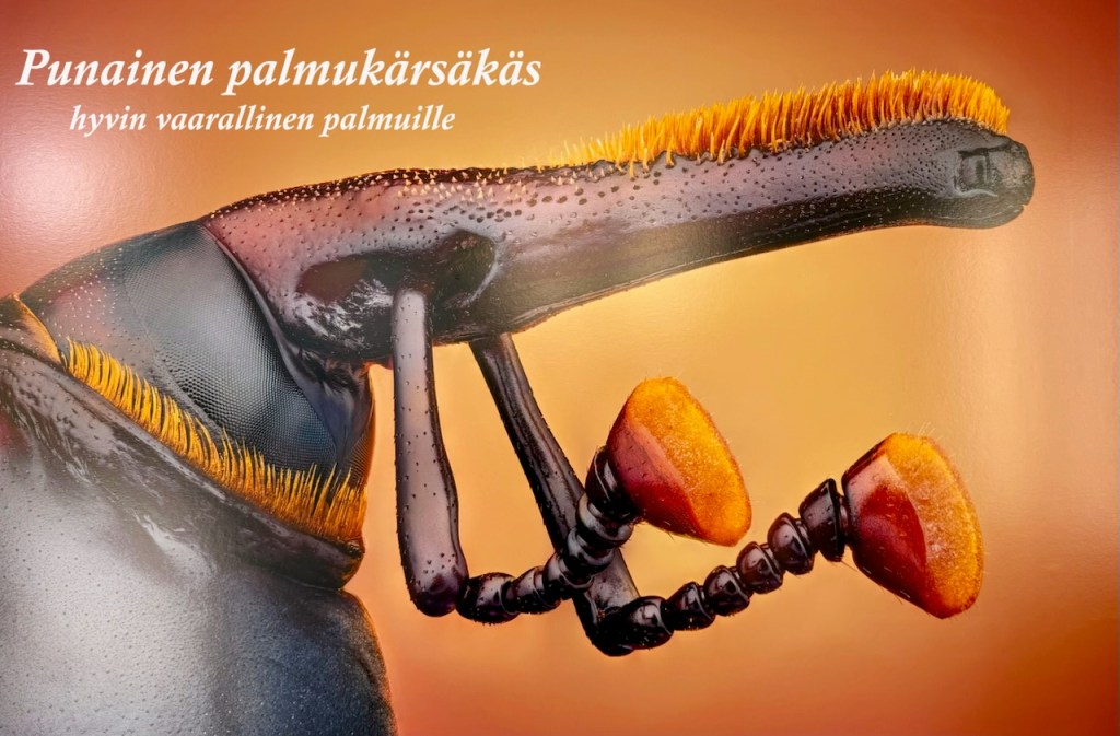 Viereisessä rakennuksessa oli maaliskuussa 2026 hieno hyönteistaulujen näyttely. Suurennettuja tarkkoja kuvia seinät täynnä. Etsin niille suomenkielisiä nimiä.