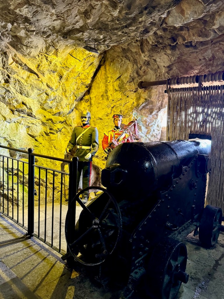 Seuraavan pysähdyksen tunneli ei ollut meidän juttu. Tunneleiden labyrintti, joka tunnetaan nimellä The Great Siege Tunnels, on ehkä vaikuttavin ihmisen kehittämä puolustusjärjestelmä, jossa on tykkejä aukoissa hyvin suojattuna. Nyt siellä oli myös näyttely henkilöhahmoista.