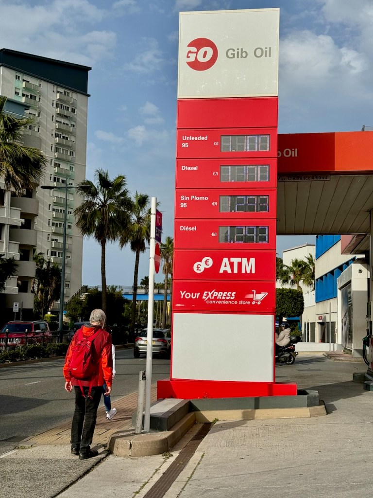 Kokemuksemme ei innosta erityisesti kehumaan Gibraltaria. Ajoimme sinne autolla (2024) ja tullessamme La Linea de la Concepcionin alueelle yksi katu olikin jotenkin tilapäisesti poikki, navigointi hukkasi reitin, eikä mitään viittoja perille näkynyt missään. Eksyksissä sitten harhailimme pienen pieniä ja ahtaita katuja. Kun tajusimme olevamme lähellä rajaa, luulimme, että jokin viitoitus johtaisi parkkialueelle, mutta eipä johtanut ja sitten löysimme onneksi yhden vapaan parkkipaikan. Automaatti ei hyväksynyt maksua kuin kahdeksi tunniksi, mutta kun parkki oli ilmainen 14 – 16, saimme neljä tuntia aikaa. Hiukan niukasti. Täällä oltiin.