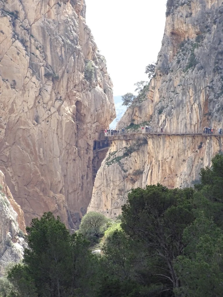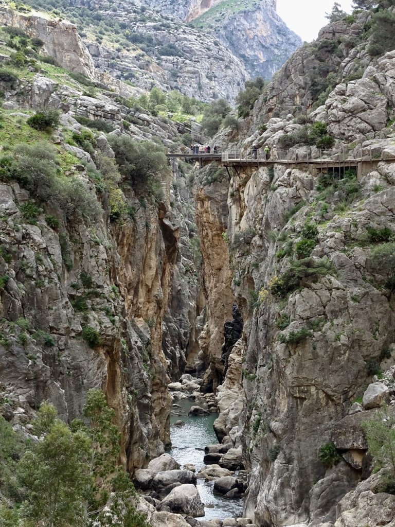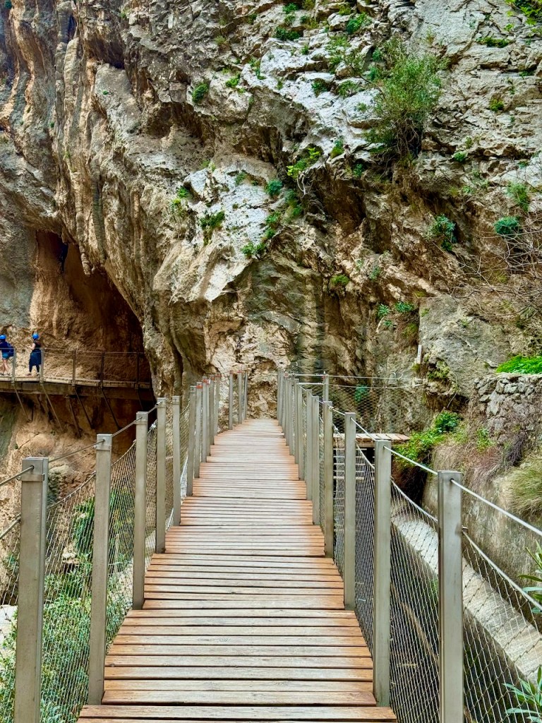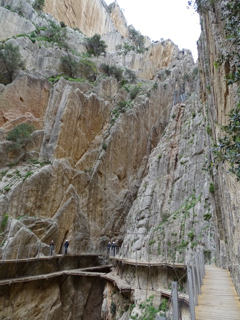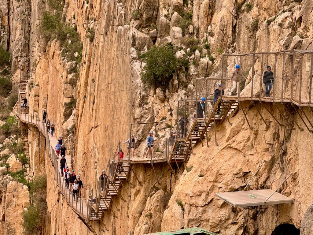 Ja höpö höpö. Tuo on ollutta ja mennyttä. Nykyisin reitti on turvallisesti kallioon pultattu hyllymäinen rakennelma, jonne voi aivan turvallisesti mennä. Selfie-tikkuja, kamerajalustoja, lastenrattaita ja alle kahdeksanvuotiaita lapsia sinne ei kuitenkaan päästetä, eikä reitti ole esteetön, muutamat portaat pitää pystyä suorittamaan. Siitä on uudelleen rakentamisen jälkeen tullut yksi Andalusian suosituimmista nähtävyyksistä, jonne lippu pitää ostaa hyvissä ajoin etukäteen.