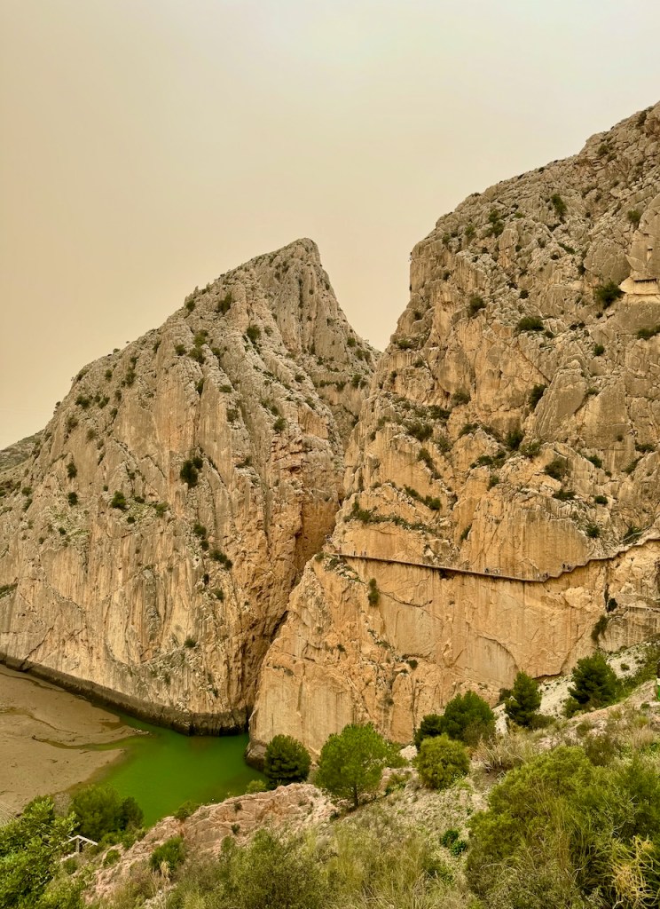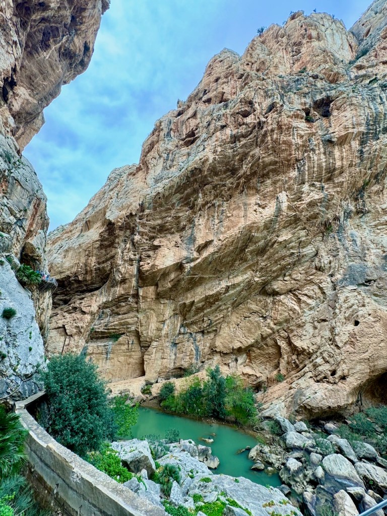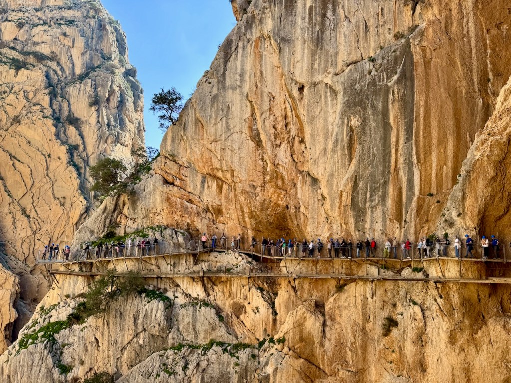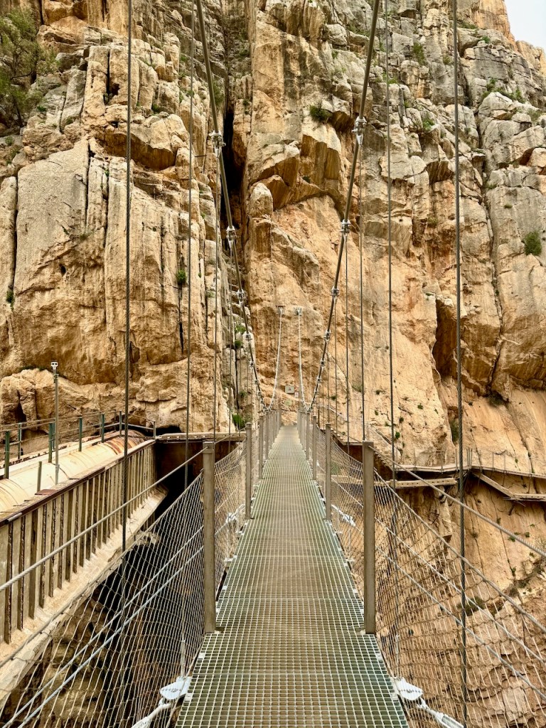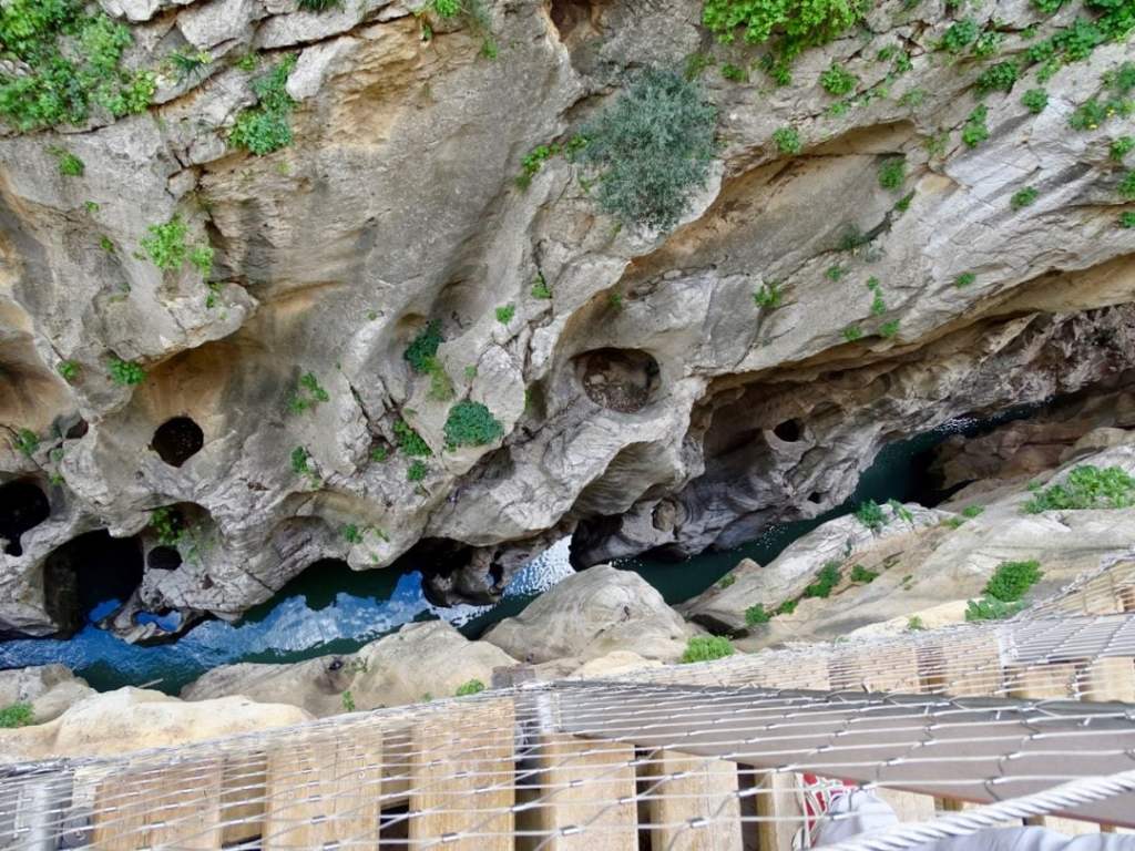 Ja höpö höpö. Tuo on ollutta ja mennyttä. Nykyisin reitti on turvallisesti kallioon pultattu hyllymäinen rakennelma, jonne voi aivan turvallisesti mennä. Selfie-tikkuja, kamerajalustoja, lastenrattaita ja alle kahdeksanvuotiaita lapsia sinne ei kuitenkaan päästetä, eikä reitti ole esteetön, muutamat portaat pitää pystyä suorittamaan. Siitä on uudelleen rakentamisen jälkeen tullut yksi Andalusian suosituimmista nähtävyyksistä, jonne lippu pitää ostaa hyvissä ajoin etukäteen.