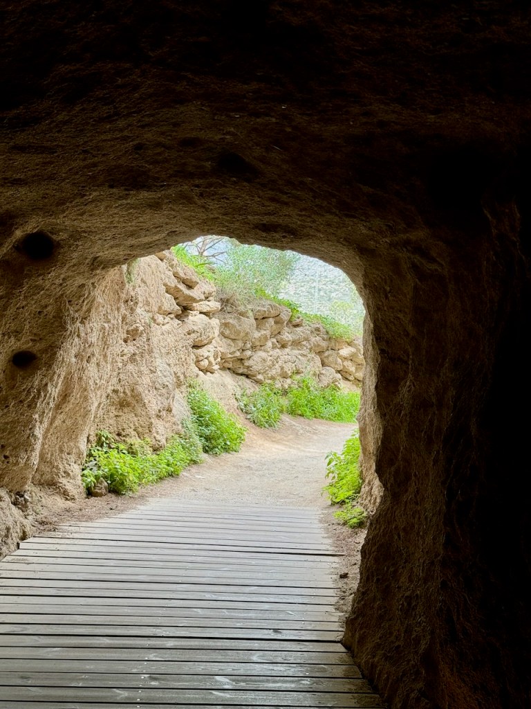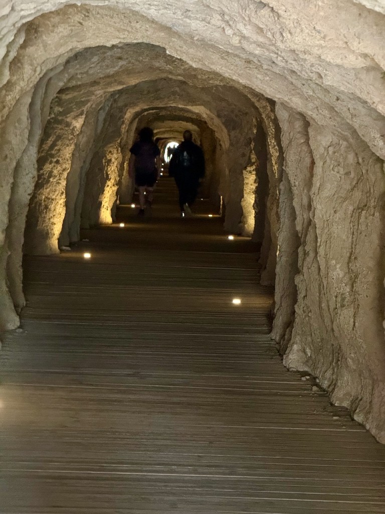Parkkipaikalta on parisataa metriä tunnelille, josta alkaa 1,5 kilometrin polku portille. Tunneli on vähän pimeä, mutta valo ei ole onneksi kovin kaukana.