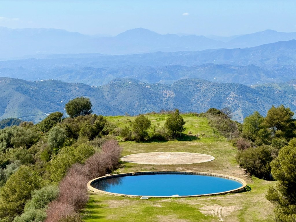 Täälläkin näköalapaikalla voi istahtaa hetkeksi ja katsella sitten maisemia. Vuoria, laaksoja, Malagaa ja merta.
