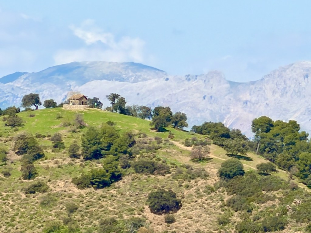 Malagan vuoret ovat upea ulkoilupaikka. On reittejä, on näkymiä ja muutamia näköalapaikkoja, joilta näkee muille vuorille ja merelle asti. Näistä valitsimme Mirador del Cochinon ja jatkoimme siitä El Cerradon ulkoilualueelle. Ajoimme auton parkkiin hienon näköalatien A-7000 varrelle ja lähdimme kiertämään Wikilocista kännykkään ladattua reittiä. 2025 kiersimme reitin uudelleen toiseen suuntaan ja vielä 2026 maaliskuussa uudelleen.