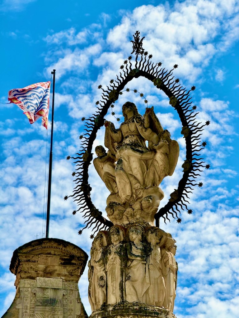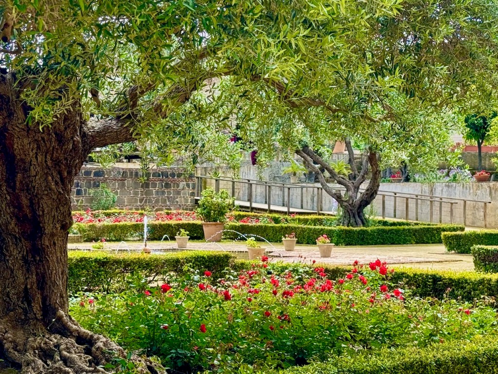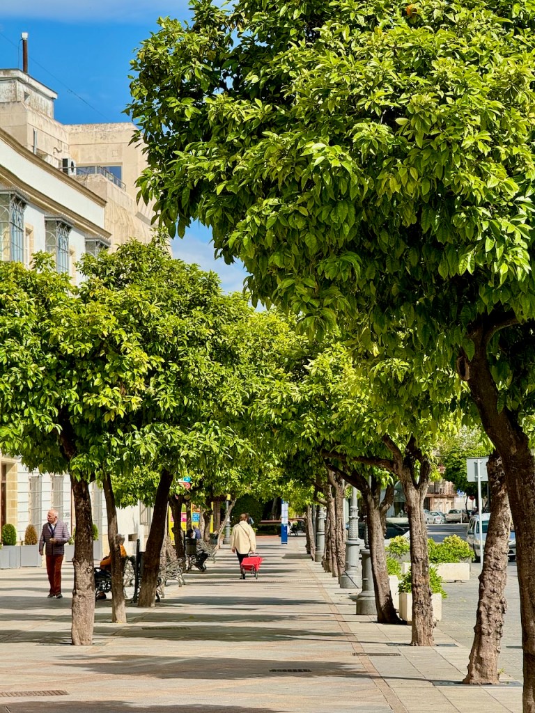 Olemme ymmärtäneet, että Jerezin kaupunki on jalkaisin tutustumisesta pitävän unelma. Ydinkeskusta muodostuukin kävelykaduista. Kävelimme pikkukatuja pitkin kohti Plaza del Arenalia, joka on Jerez de la Fronteran keskeinen paikka baareille, ravintoloille ja oleskelulle. Suihkulähde keskellä aukiota ja sen keskellä ratsastaja kertookin myös siitä, että kaupunki on myös paikka hevosharrastuksille, koska Andalusian kuuluisin hevosperinne löytyy Jerezistä. Siellä on Real Andaluza del Arte Equestre-koulu, jossa voi odottaa vaikka upeita hevosbalettinäyöksiä, joissa hevoset tanssivat klassisen musiikin tahdissa puolentoista tunnin näytöksen. Tällaisesta emme etukäteen tienneet, mutta emme ehkä olisi ehtineet näytökseenkään. Jos kiinnostaa, hae lisätiedot realescuela.org.