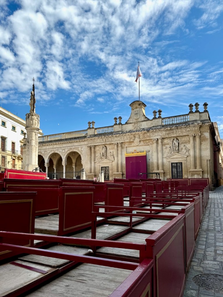 Pääsiäiskulkueiden jäljiltä oli kaupunkikuvassa muutakin. Erityisesti kulkueiden katsojille tarkoitettuja istuinrakennelmia.