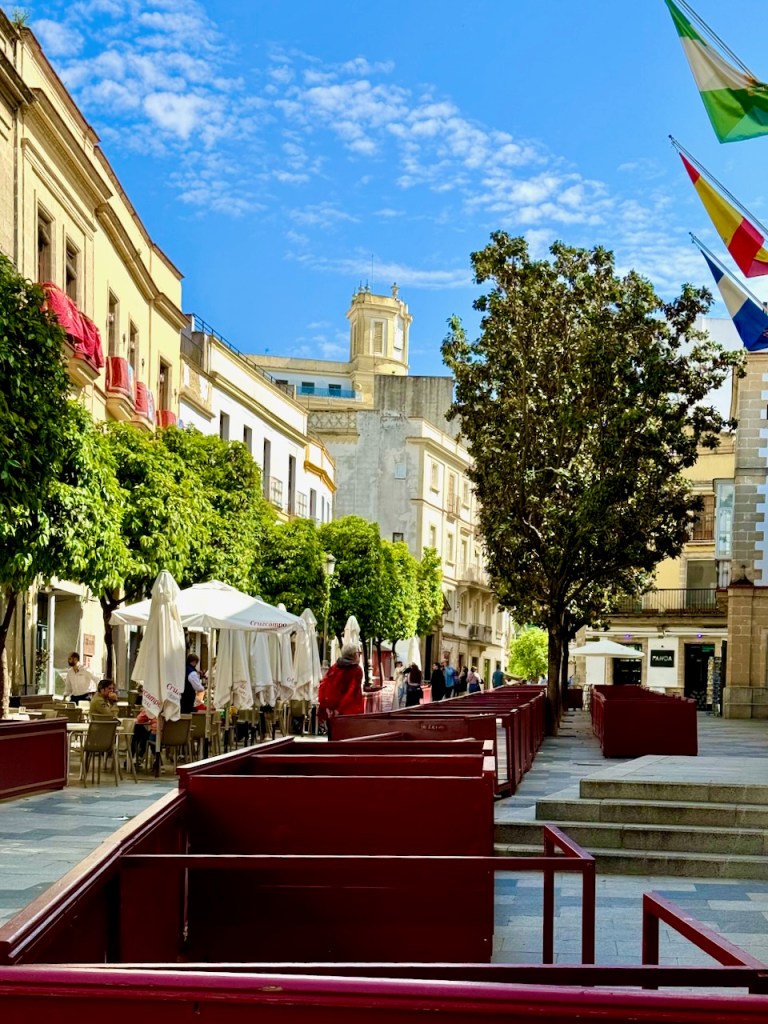 Yksi hieno paikka on Plaza El Gallo Azul, jossa on paljon terasseja ja niiden vieressä sherryn tuotantoon liittyvän firman rakennus.