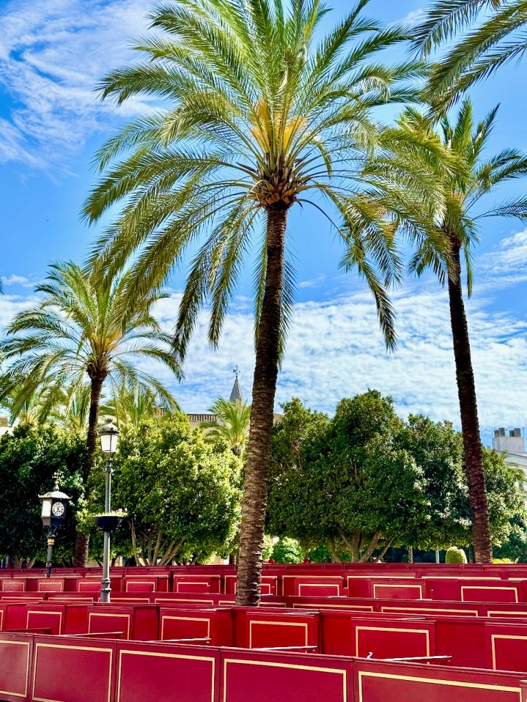 Tämän aukion laidalla on myös turisti-info, josta meille suositeltiin käyntiä Alcázar de Jerezin linnassa ja sen vieressä sijaitsevassa Catedral de Jerez de la Fronterassa. Vanhankaupungin maurien aikaan vievä arkkitehtuuri palatseineen ja kirkkoineen on päiväkävelyn olennaisen hieno sisältö ainakin meille.