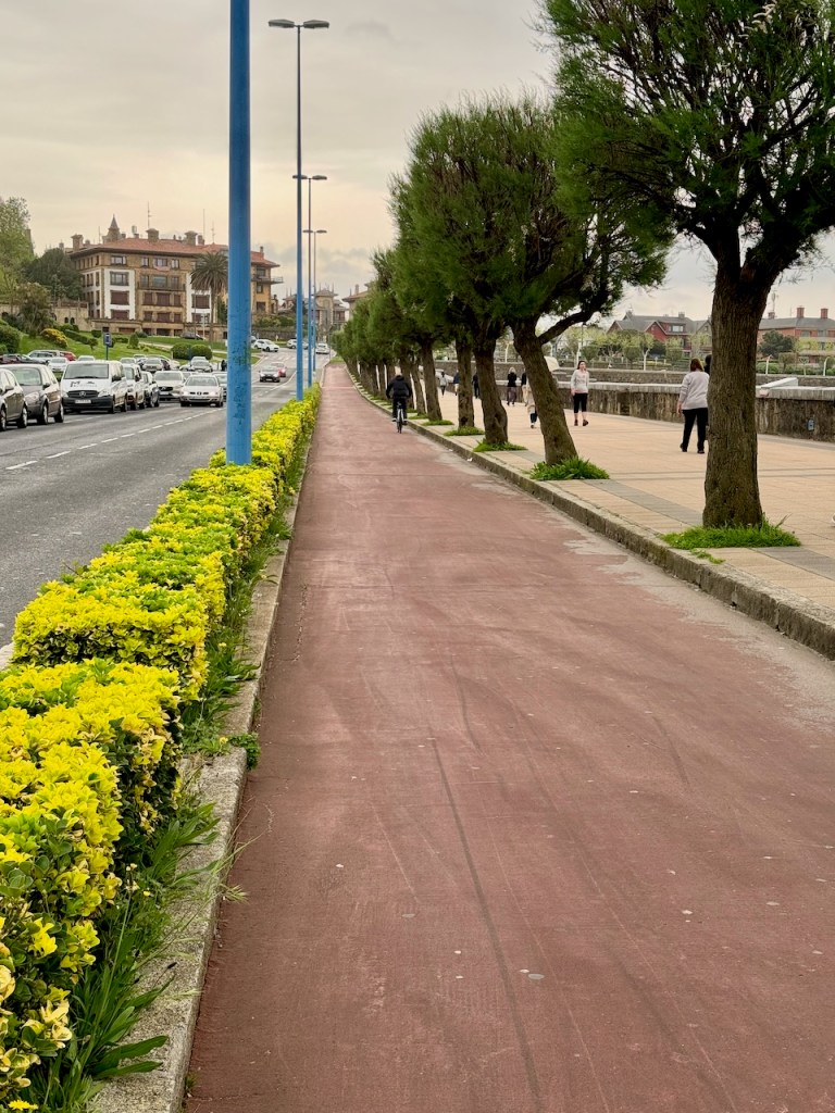 Getxo on vanha alue, jossa on paljon historiallisia rikkaiden asuinrakennuksia ja nykyisin myös urheiluun ja liikuntaan liittyviä mahdollisuuksia sekä veneillä että kävellen. Tämä oli hauska nähdä, vaikka pysähdyimme tähän kaupunginosaan vähän sattumalta, eipä tästä juuri missään turisti-infoissa tietoja ollut. Tällainen kävely- ja pyöräilyreitti rantaa pitkin.