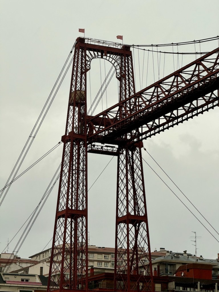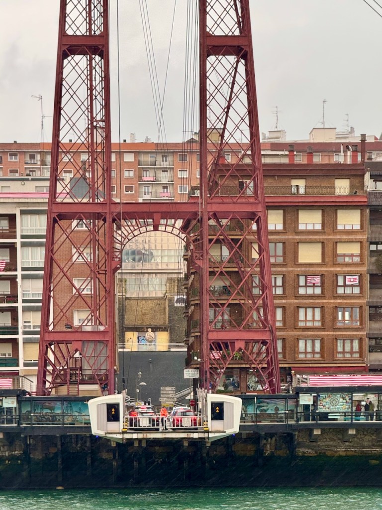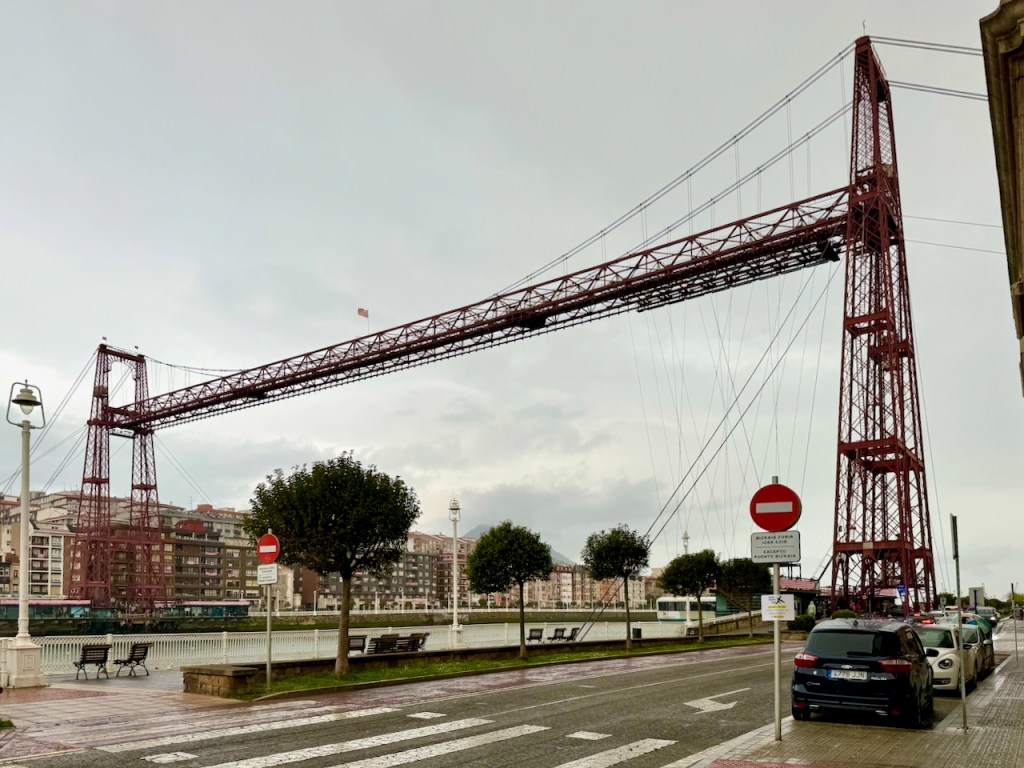 Vizcayan silta on historiaa. Se on rautasilta, jota pitkin kuljetettiin ihmisiä ja kulkuneuvoja riippuvassa korissa ensimmäisenä maailmassa. Tämä ei ole keskustassa, vaan oikeastaan Nervion joen suussa, meren rannalla. Aloitimme täältä, ajoimme kuitenkin autolla ensin Getxon alueelle.