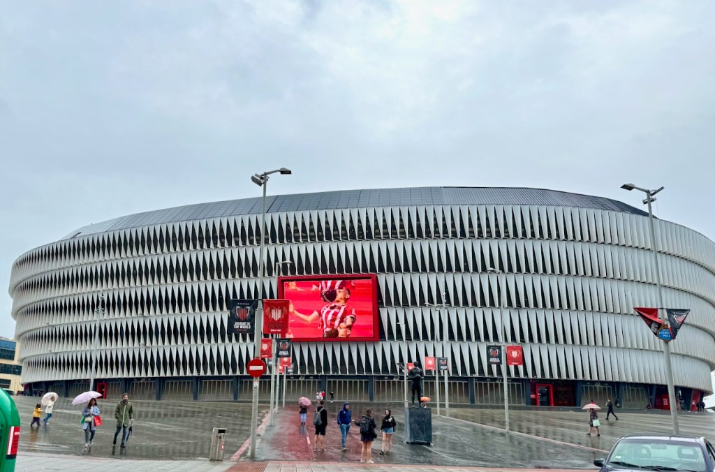 Ihan ensimmäinen ihmeteltävä nähtävyys oli tämä, San Marnésin liikuntahalli. Päivää aikaisemmin Bilbaossa oli järjestetty 2024 jalkapallon Mestarien liigan finaali.