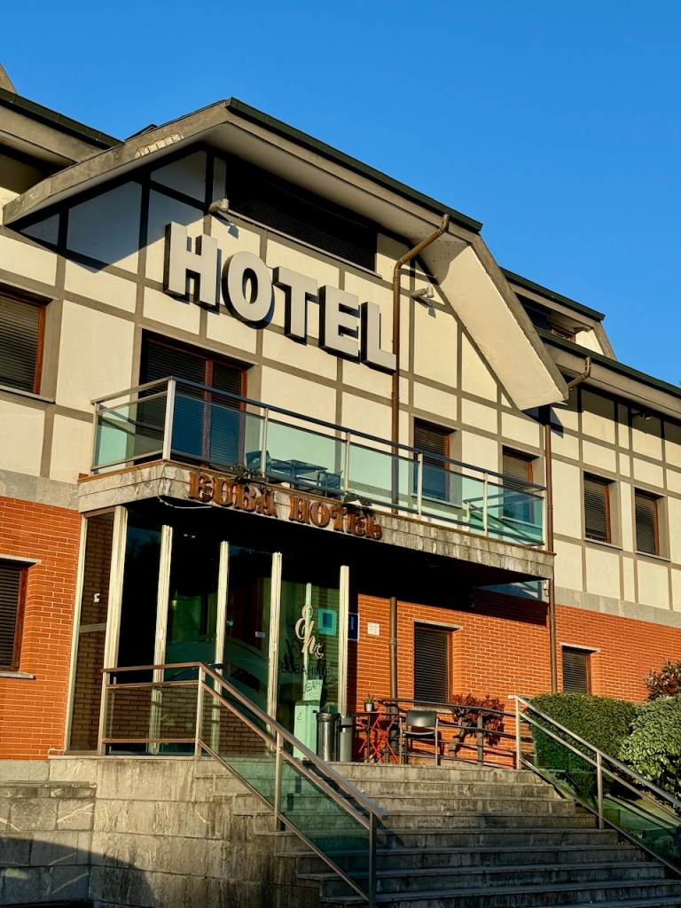 Ja sitten Bilbaon ulkopuolella olevaan Euba-hotelliin valmistautumaan seuraavan päivän matkaan pitkälle Ranskaan, eli Vichyyn. Hotelli oli asiallinen, hinta kohtuullinen (50€/yö). Hiukan kaukana, noin parinkymmenen kilometrin päässä Bilbaosta, mutta ei se meidän yhden päivän kaupunkiretkellemme ongelma ollut. Ihan vieressä on Euban rautatieasema, jos ei välitä autoa käyttää.