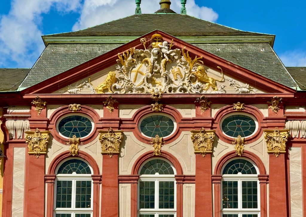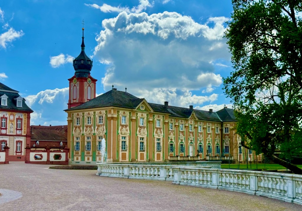 Saksan linnoista olemme suorittaneet jo 26, nyt matkalle sattui neljä houkuttelevaa lisää. Näistä Bruchsalin linna on linna Bruchsalin kaupungissa Baden Württenbergissä, Saksassa. Barokin tyylisuuntaa edustava linna rakennettiin Speyerin ruhtinaspiispojen asuinpaikaksi 1720-luvulla. Luimme etukäteen upeista portaikoista, kattofreskoista, seinävaatteista ja mekaanisen musiikin museosta ja kun katsoimme vielä turisti-infojen kuvia, ei paikkaa voinut jättää väliin.