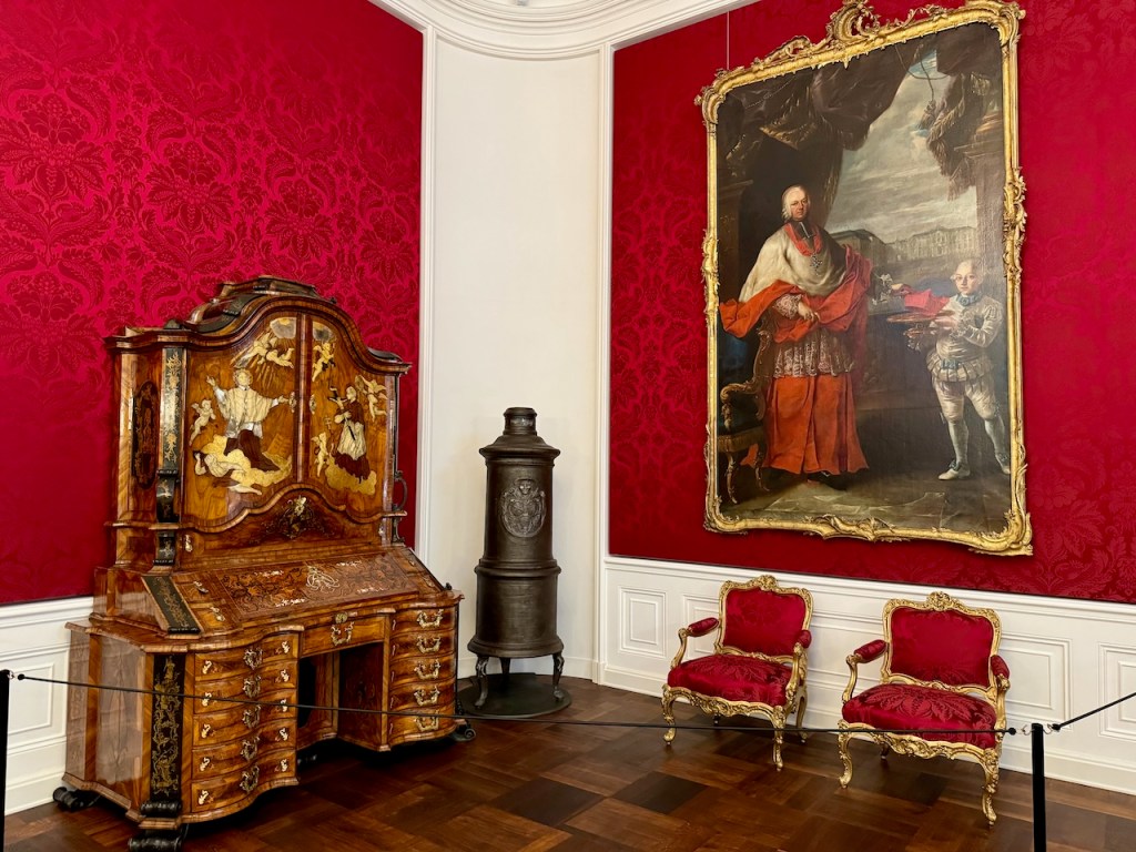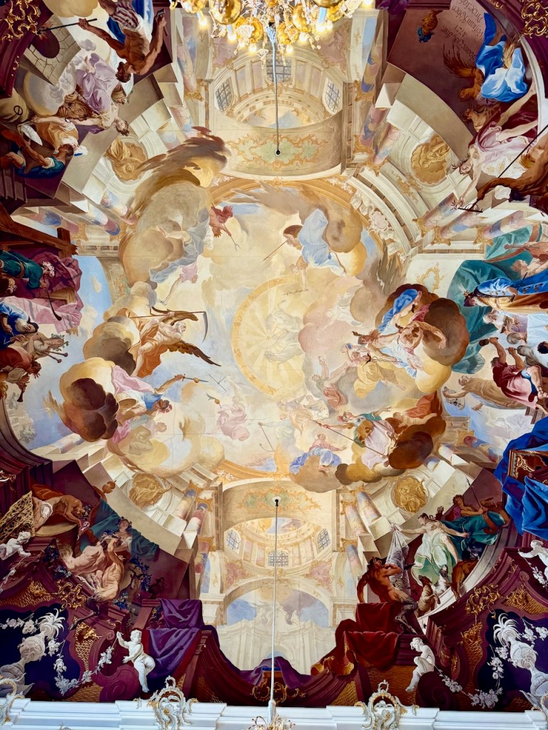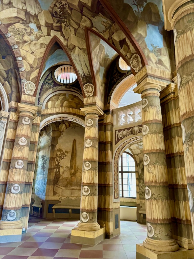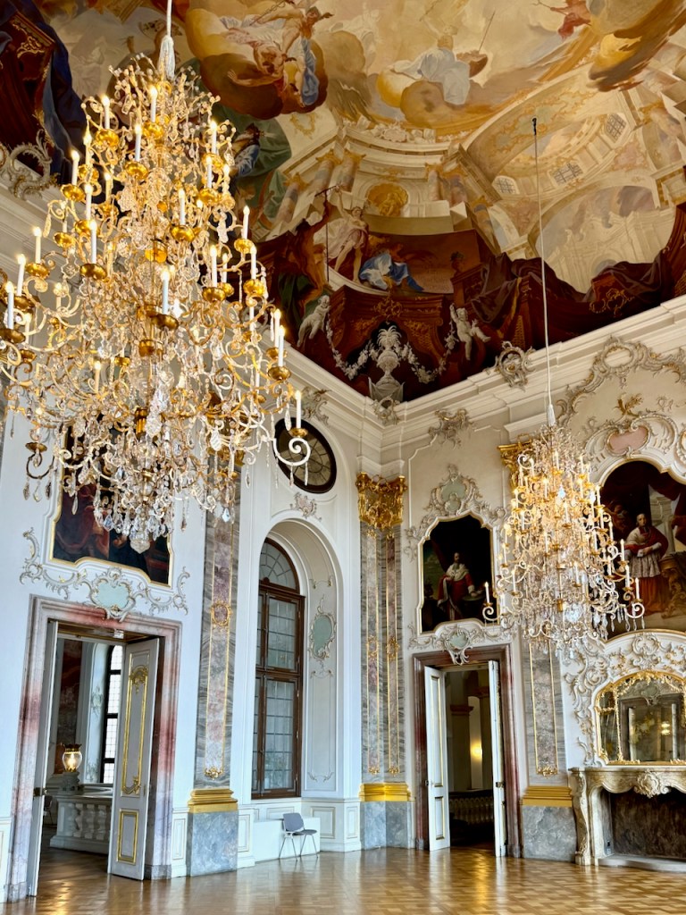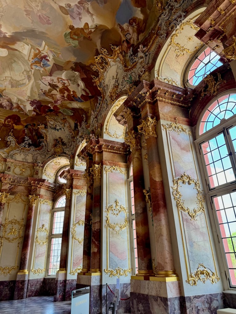 Koristeelliset huoneet olivat kyllä aivan uskomattomia. Niitä katsellessa ymmärsi hyvin, että toisen maailmansodan tuhojen korjaamiseen oli mennyt yli 50 vuotta.