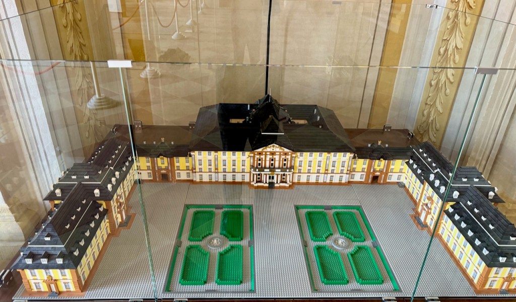 Esitteistä näimme, että museon tiloissa oli ollut Legoihin liittyvä näyttely. Emme nähneet, olisiko sitä ollut enemmänkin jäljellä, mutta nämä legorakennelmat kuvaaavat havainnollisesti linnan historiaa. Pommitettu ja raunioitunut linna on korjattu hienoksi.