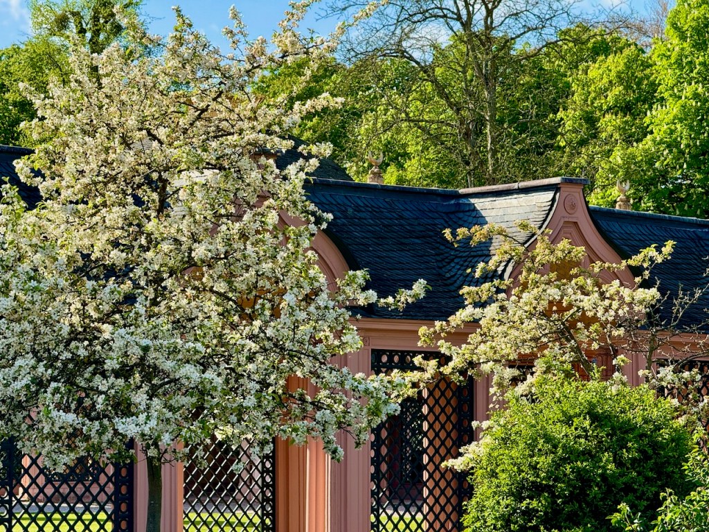 Lähdimme kävelemään parin kilometrin päähän Schwetzingenin linnaan. Kävelymatkakin oli nautintoa, kaunista ja siistiä katua, kukkivia pihoja.