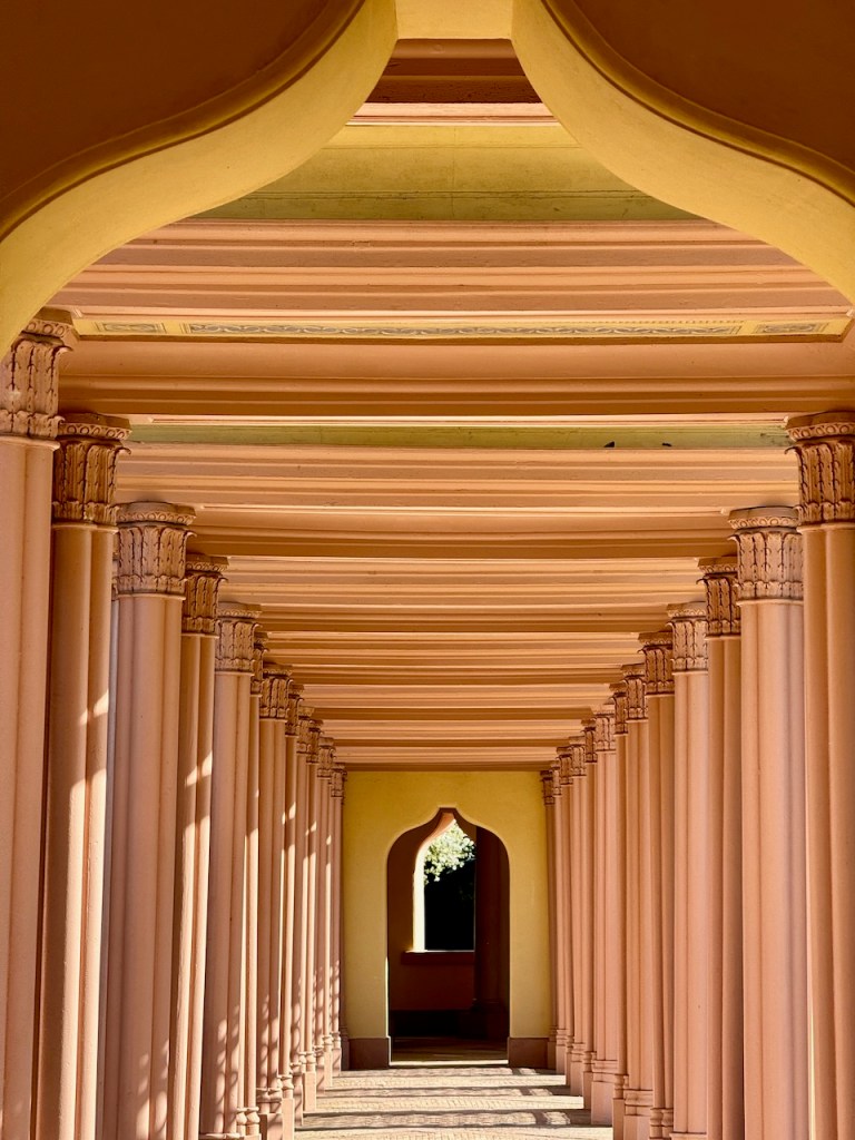 Länsimaisen ja itämaisen arkkitehtuurikielen yhdistelmä on kiehtova barokkikupolien, ikkunoiden, pyöristettyjen holvikäytävien, minareettien, paviljonkien ja puolikuiden kokoelma. Viittaukset eri uskontoihin on tarkoitettu rohkaisemaan vierailijoita uskontojen väliseen ja niitä yhdistävään meditointiin.