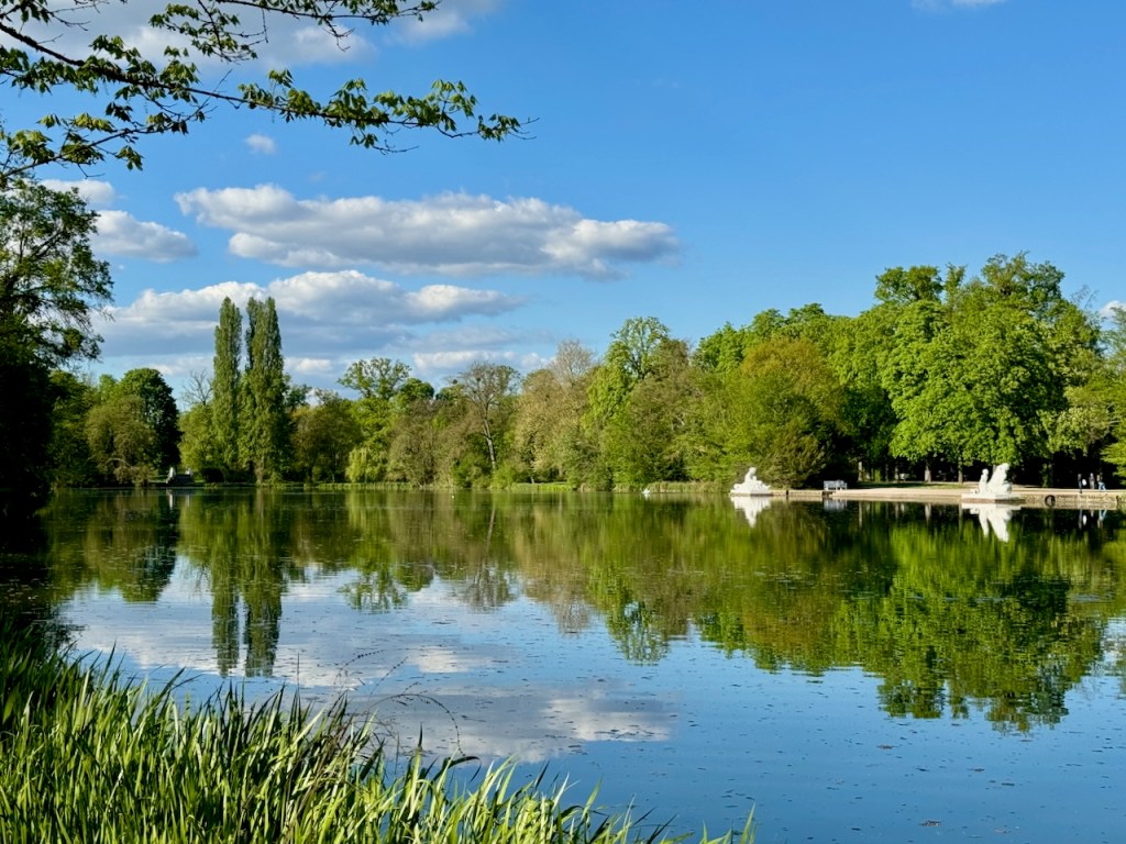 Puiston kierros isomman lammen ympäri oli nautintoa. Linnut lauloivat, joutsenet ja hanhet lentelivät ja ruokailivat lammella, maisemat olivat kauniit ja siltoja ja muitakin rakennelmia oli nähtävissä.