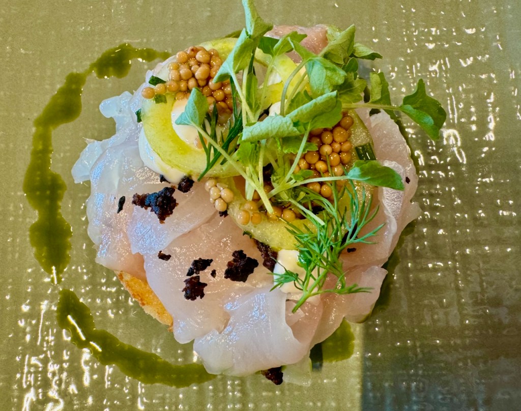 Fisherman’s Bistrossa nautimme paluumatkalla päivällisen. Tarjolla on monipuolinen à la carte -valikoima, joista on Bistron sisäänkäynnillä hyvä esittely- ja tilausseinä. Koko ryhmämme oli hyvin tyytyväinen valintoihinsa ja jälkiruokaan. Minulle ihastuttavin niiden lisäksi oli tämä siikavoileipä, joka tarjottiin alkupalaksi.