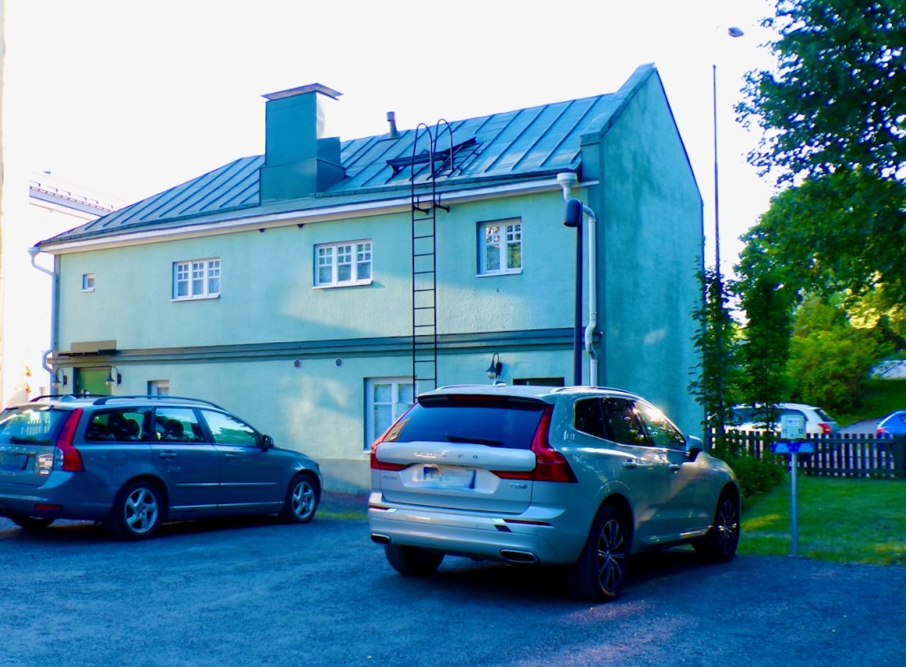 Tuolla parkkipaikalla odottaa Volvo ja kuski.