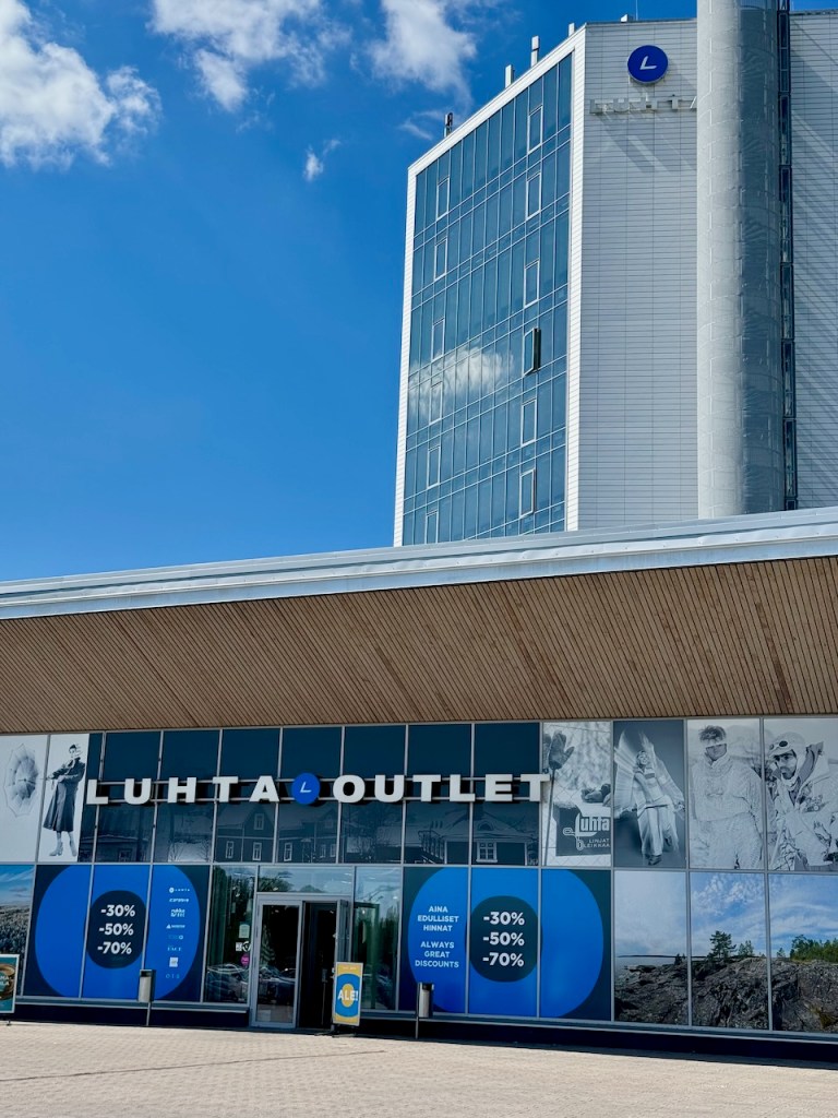 Lahden kaupungissa olemme poikenneet harvoin, ellei ole ollut jotain asiaa sinne, esim jokin tapahtuma, mutta Luhdan Outlet tornissa poikkeamme usein. On kiva kierrellä ja katsoa, olisiko tarjolla jotain, mitä tarvitsemme. Esim kodintekstiilejä, pyyhkeitä yms löytyisi aina, jos tarvitsisimme sellaisia. Urheiluvaatteita ja takkejakin oli hyvin tarjolla. Ei vain nyt sattunut juuri sitä kokoa/väriä/materiaalia, joka olisi ollut se ainoa oikea.
