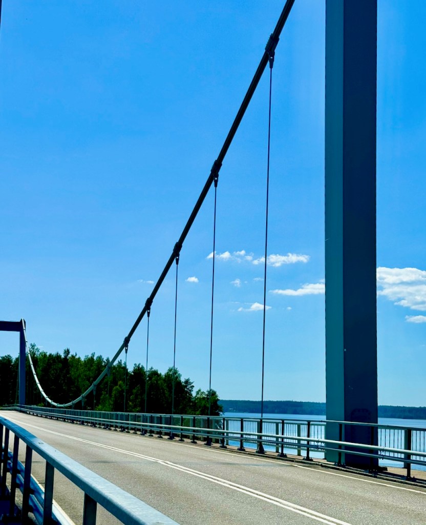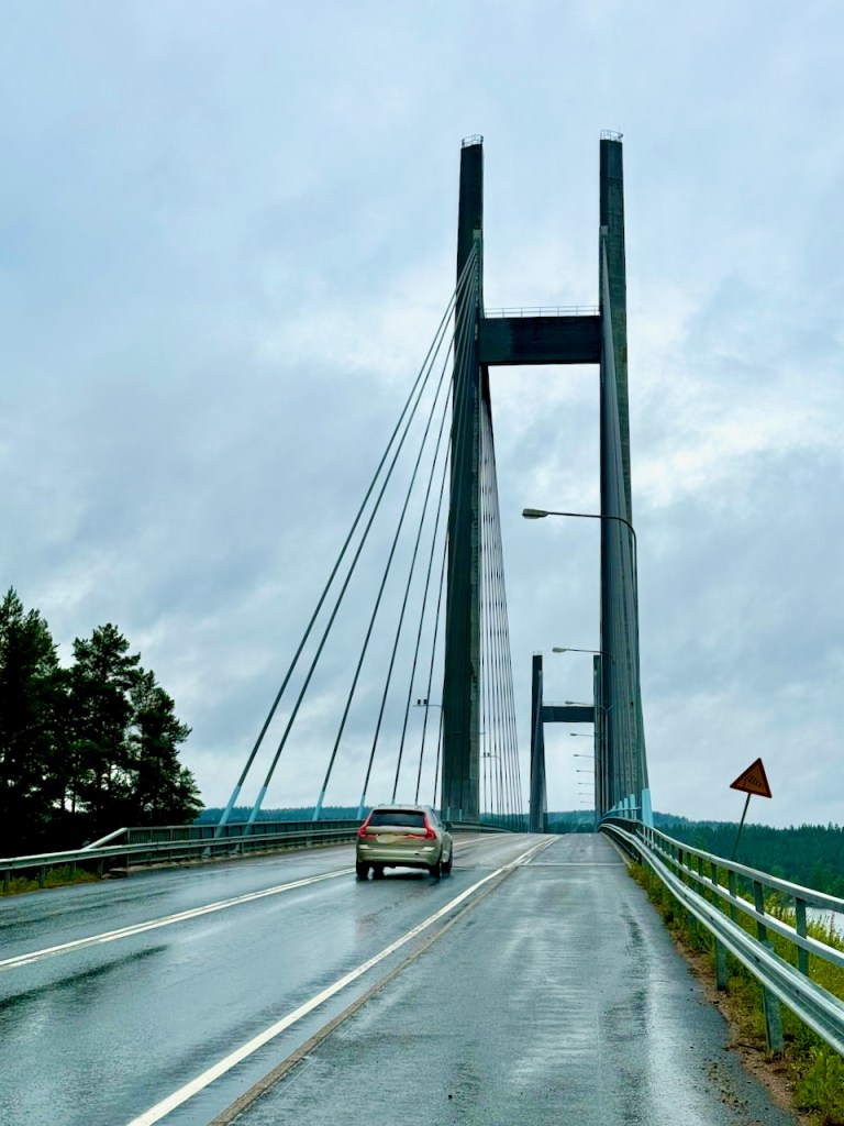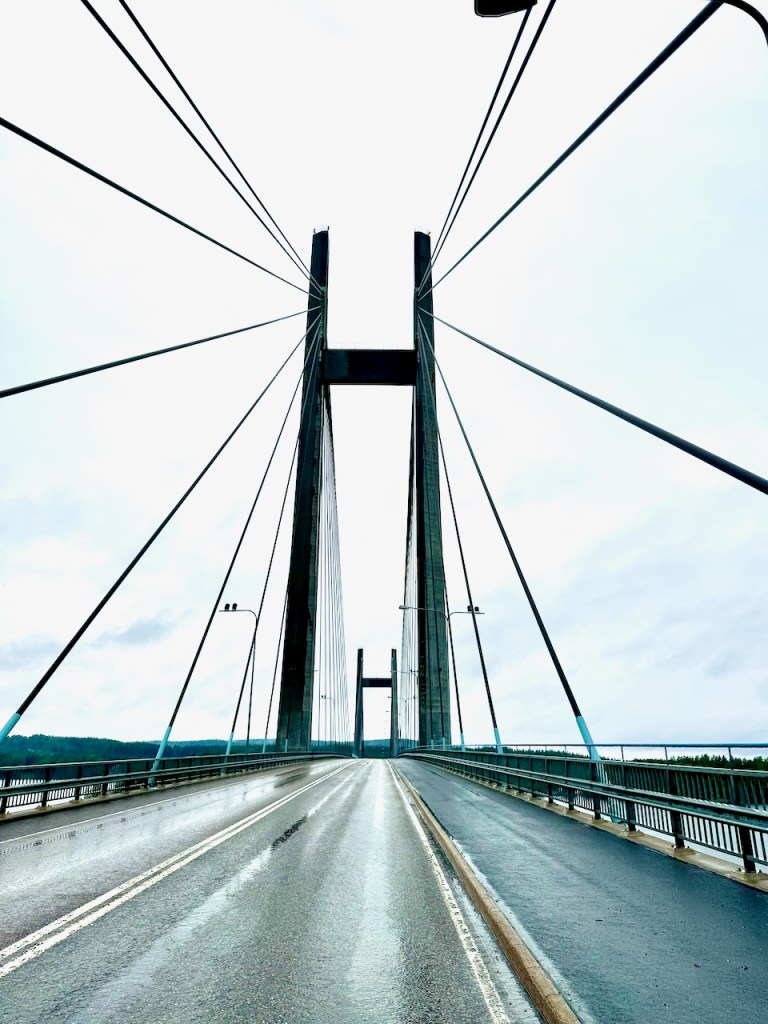 Ihana. Teimme jälleen kerran meille tyypillisen ratkaisun. Juha jarrutti, pysäytti auton ja avasi oven ennen siltaa. Astuin ulos, aloin kävellä siltaa pitkin ja Juha ajoi sillan toiseen päähän parkkipaikalle odottamaan. Oli pientä sadetta, mutta maisemat voittivat sen hyvin.