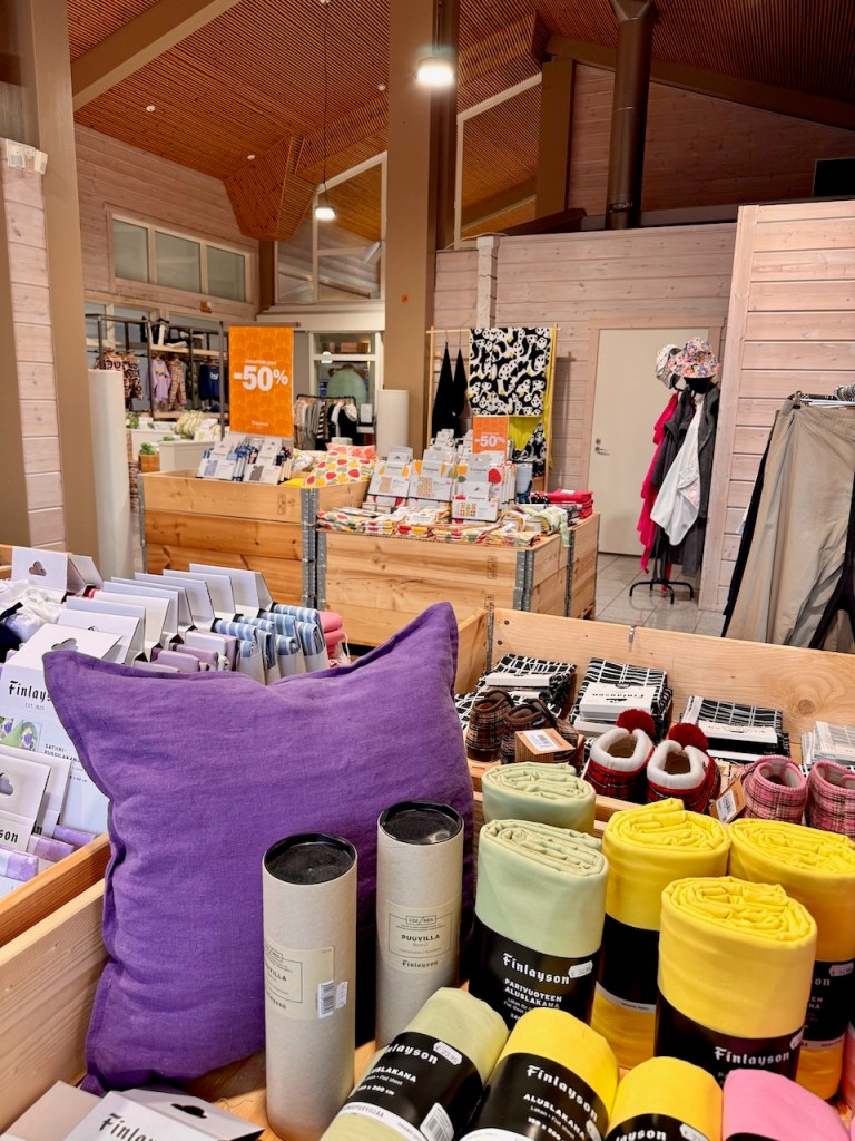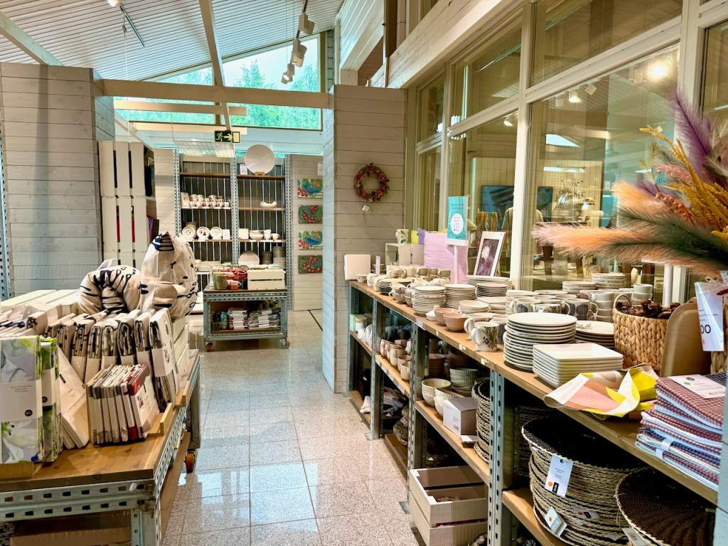 Tarjoaa kivan myymälän, josta napsimme ostoskoriin pari uutta juustoa, muutaman kauraleivän ja Ihan hyvä -jogurtteja ja mehukeittoja tuliaisiksi lastenlapsille. Kaikki onnistuneita ostoksia. Eikä paikka ole pelkkä Juustoportin myymälä, kahvio ja vessa, vaan seinän takana ovat myös Pentikin Outlet ja Finlaysonin Pop up -myymälä.