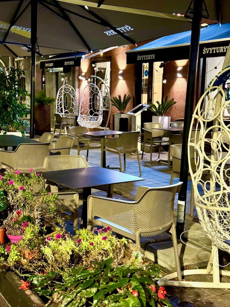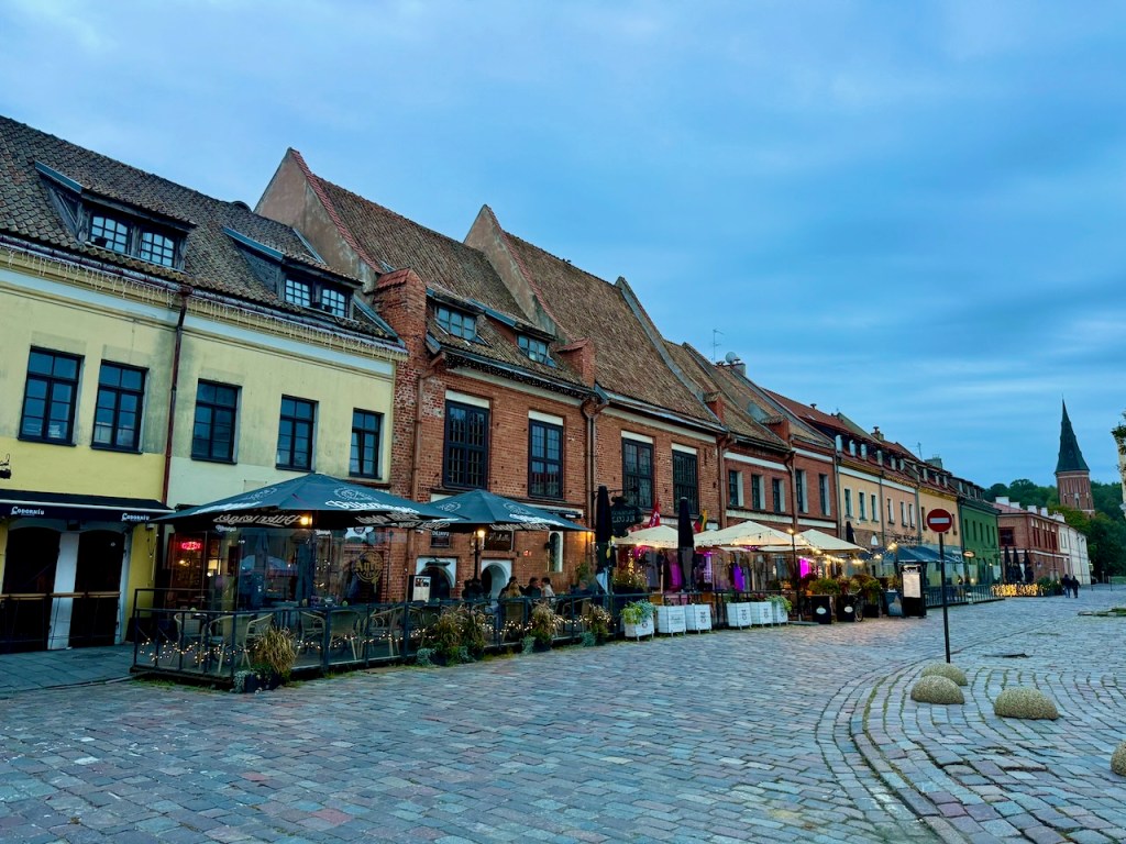 Kaunas on Liettuan toiseksi suurin kaupunki ja merkittävä kulttuurin ja liike-elämän keskus. Asukkaita on noin 300 000 ja merkittävä määrä heistä, eli noin 25 000 on yliopisto-opiskelijoita. Eli aikalailla opiskelijakaupunki. Tämä taisi näkyä pizzerioiden terasseilla? Kaunas oli 1900-luvun alussa myös Liettuan pääkaupunki. Tällainen tausta.