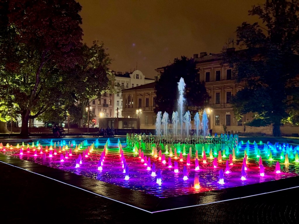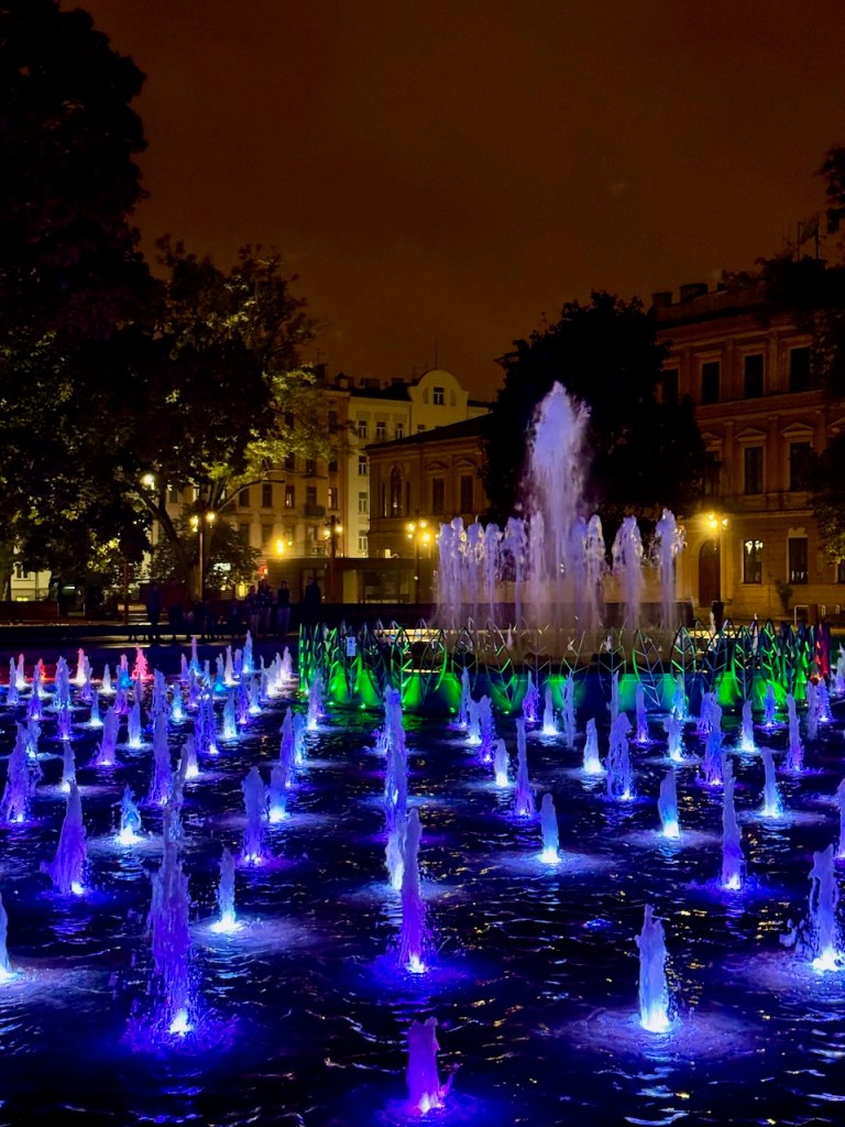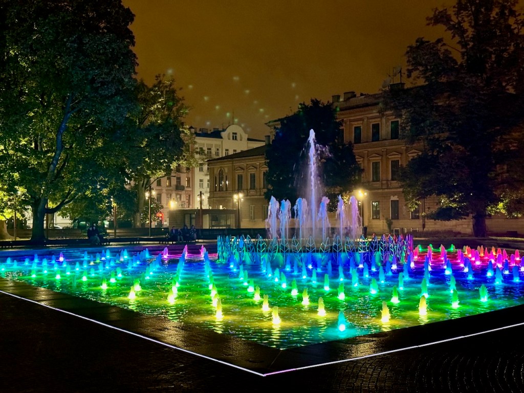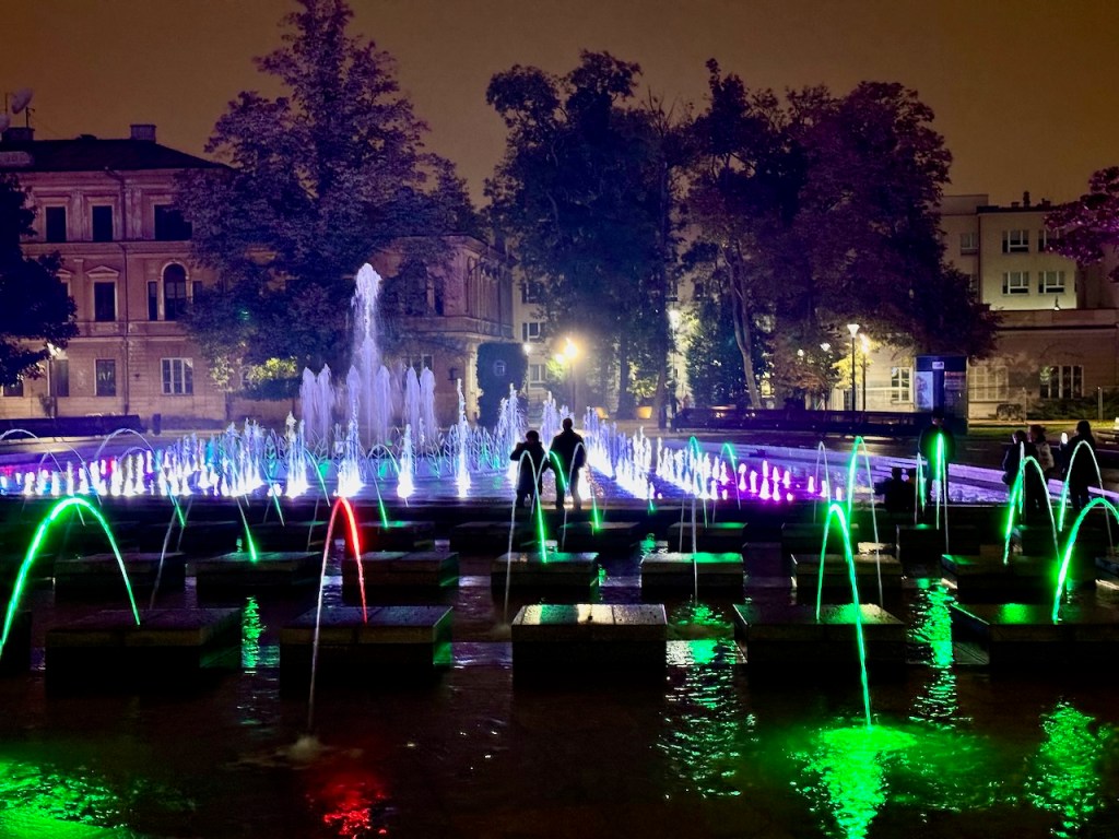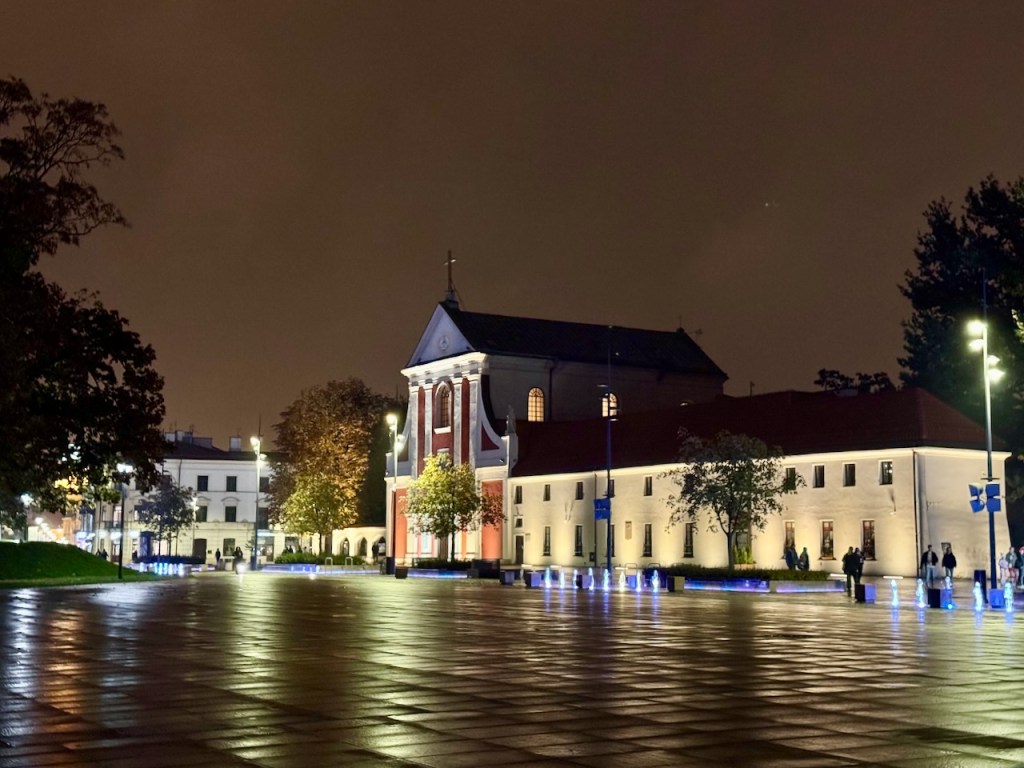 Liettuan aukiolla on valtavan hieno ja iso suihkulähde. Illalla koko aukio ja sen suihkulähteet on valaistu eri värein ja värit vaihtuvat. Multimediaesitykseen kuuluu myös musiikkia.