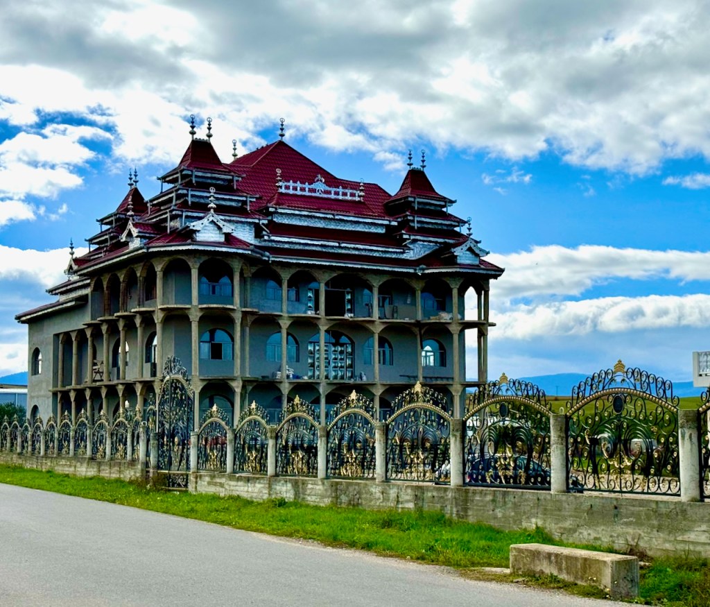 ”Todennäköisesti missään muualla Romaniassa (tai mahdollisesti koko maailmassa) ei ole enemmän kimalteiden peittämiä palatsitaloja ja kimaltelevia autoja kuin tässä pienessä Huedinin kaupungissa. Huedin tunnetaan paikallisesti ”mustalaislinnojen kaupunkina”. Jokainen tämän enemmistöltään romanien kaupungin asukas kilpailee keskenään rakentaakseen isomman ja kimaltelevan linnan ja omistaakseen kiiltävävanteisen BMWn tai Mercedeksen kiiltävällä vanteella.