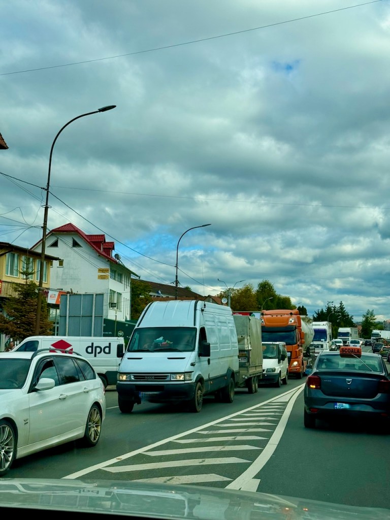 Tällaista reittiä ajoimme, eikä se läheskään kaikki mitään moottoritietä ollut. Navigaattorikin arvioi 350 km matkan ajaksi lähes 4,5 tuntia. Meiltä kuluu aina enemmän, mutta antaa tuo jonkinlaista osviittaa. Olimme ajatelleet, että Cluj Napocassa olisi voinut poiketa katsomaan näkymiä, mutta sitten meille tulikin se yllätys.