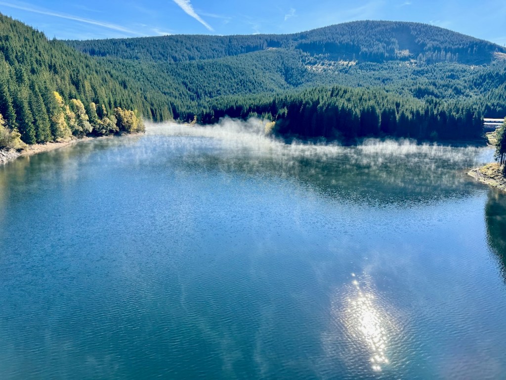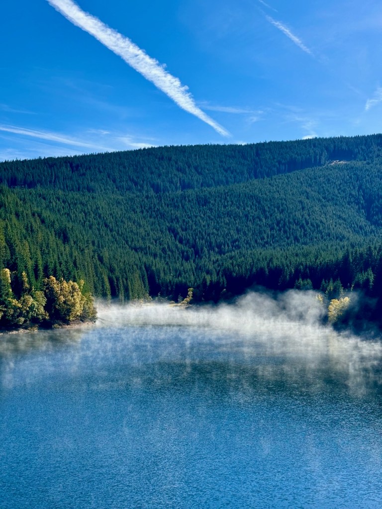 Olimme lähteneet matkaan aikaisin aamulla ehtiäksemme rauhassa illaksi Timisoaraan asti, eikä aurinko ollut vielä ehtinyt haihduttaa aamun vesihöyryjä järven pinnalta. Ihanaa katsottavaa!