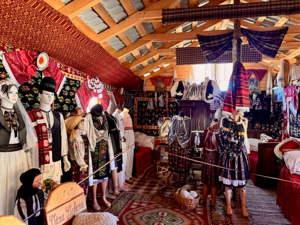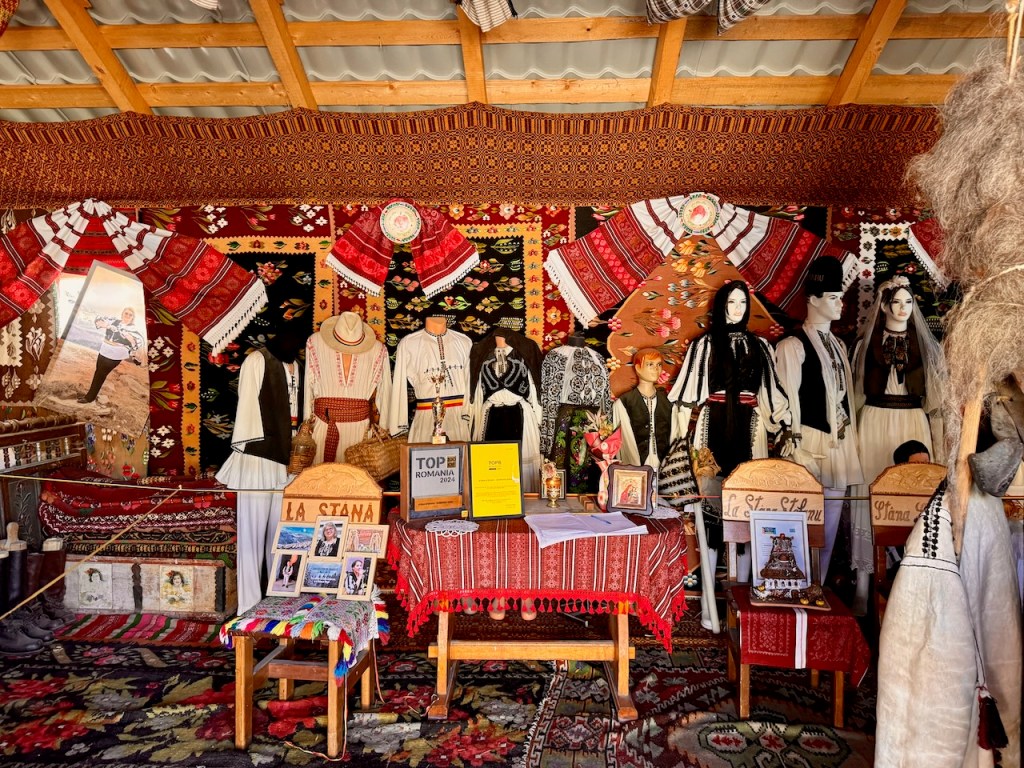 Pikku pysähdyksen teimme tälläkin välillä Stana Stefanussa, jossa kahvilan ja ravintolan lisäksi oli värikästä ja perinteistä myytävää varsinkin erilaisia asuja ja sisustustekstiilejä.