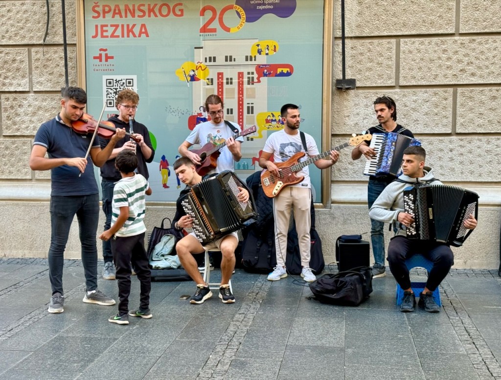 Sitten takaisin Knez Mihailovan kävelykadulle, joka on selkeästi turisteille tarkoitettu. Oli yhtyeitä ja katusoittajia.