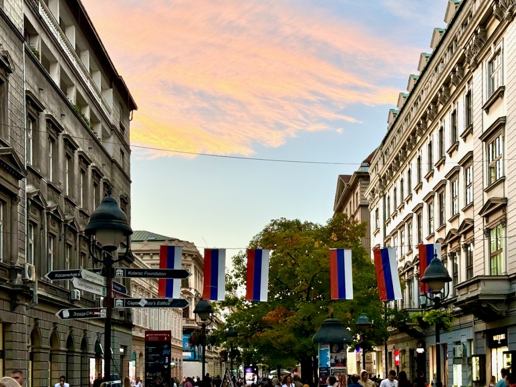 Keskustan suuntaan kävellen. Vähän mietityttivät lähikortteleiden näkymät, mutta ne ilmeisesti kertovat siitä, että nykytilanne Belgradissa on edelleen monimutkainen.