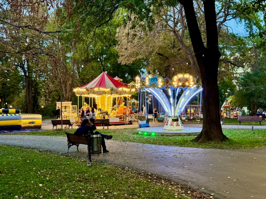 Pienten ylämäkien jälkeen olimme Studenski-puistossa. Kiertelimme katsomassa patsaita, joita oli siellä useita.