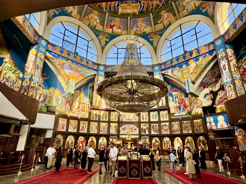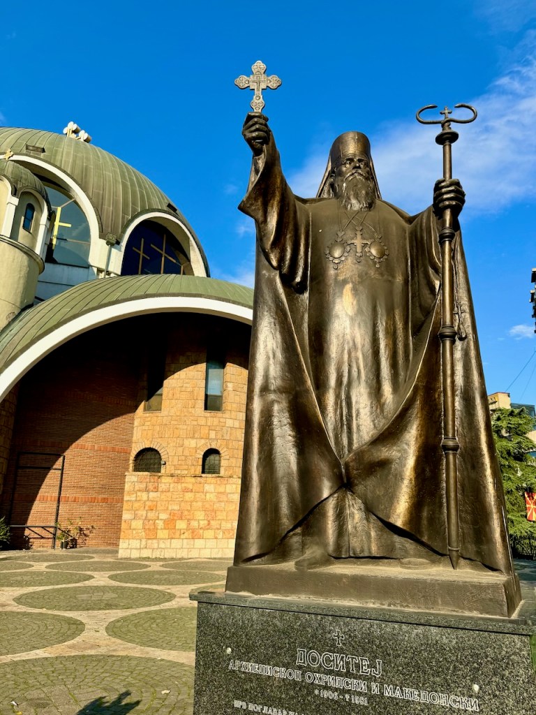 Lähellä näitä rakennuksia joen toisella puolella on Makedonian Ortodoksinen kirkko eli Pyhän Klemens Ohridin Katedraali. Kirkon rakentaminen aloitettiin vuonna 1972, ja se vihittiin käyttöön 12. elokuuta 1990 kirkon suojelijan Pyhän Klemens Ohridilaisen syntymän 1150-vuotispäivänä. Hieno rakennus!
