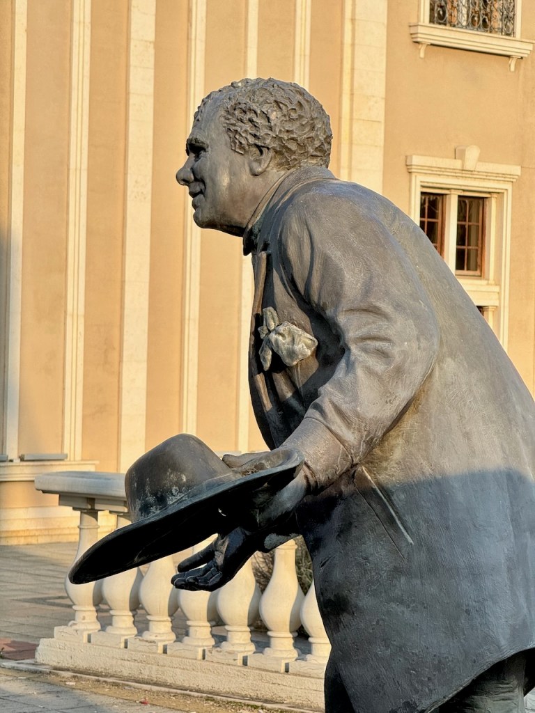 Patsaita tosiaan riittää niin, että niihin suhtautuminen on jo usein kriittistä, ainakin ristiriitaista, mutta oli niitä kiva katsella. Skopje on turisteille edullinen, mutta eipä ihan noin halvalla kaikkea löydy.