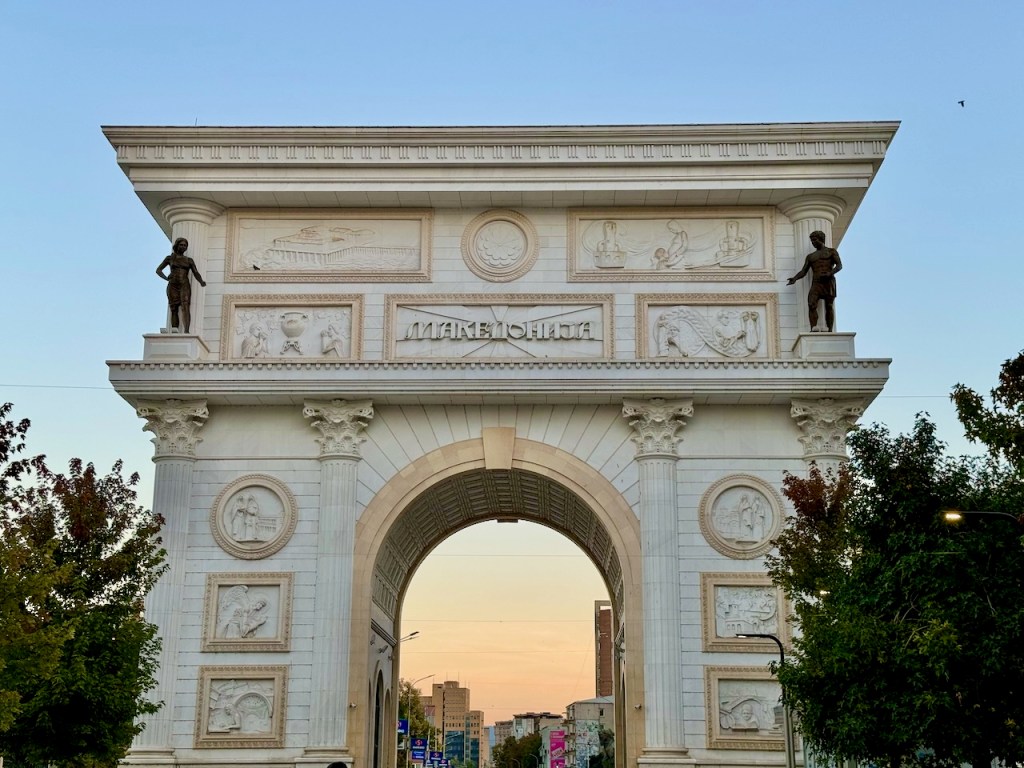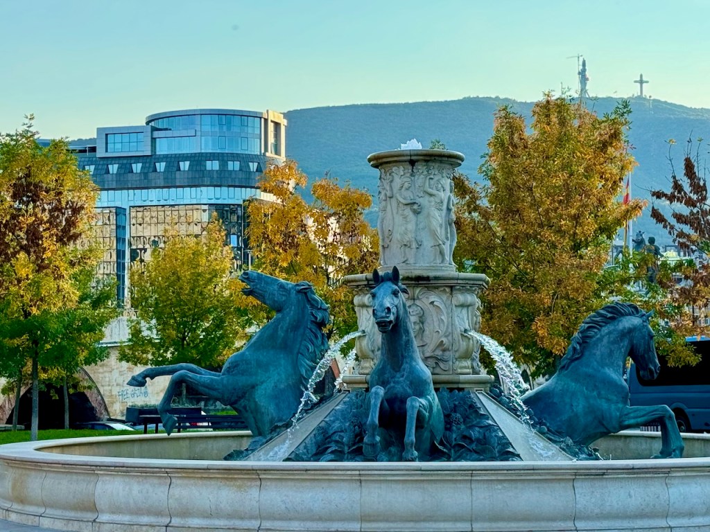 Pohjois-Makedonia ja Skopje automatkalla ekaa kertaa. Skopje kärsi pahan maanjäristyksen 1963, ja siitä on tehty uudelleen ehjä ja komea kaupunki. Vanhat uusitut rakennukset, aukiot, suihkulähteet ja tolkuton määrä patsaita, olipa paljon nähtävää. Myös Millennium-risti Vodjon kansallispuiston kukkulan laella oli gondolihisseineen hauska kokemus. Viikonloppunamme meillä oli aivan erityinen kokemus, kun Skopjessa oli Hip Hop -tanssin maailmanmestaruuskilpailut. Peukuttelimme lastenlapsiamme.