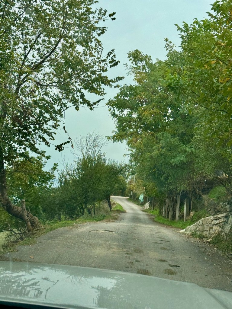 Käännyimme takaisin ja ajoimme tietä, jolle auto mahtui. Pysähdyimme katselemaan maisemia alas.