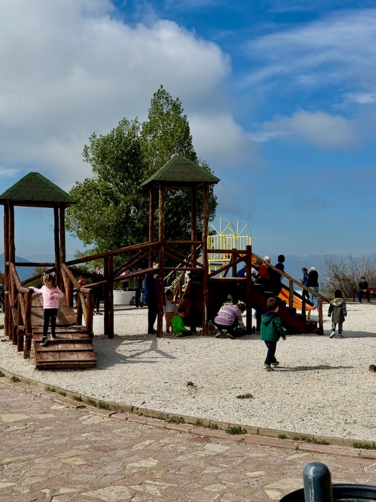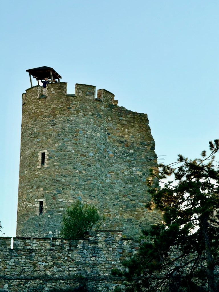 Niitä ylös kiivetessä tulee jälleen näköalapaikoille, joilta näkee linnalle ja ylhäällä on myös pienempi ortodoksinen kirkko.