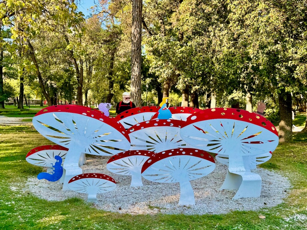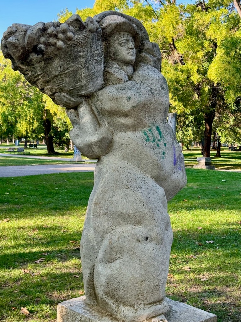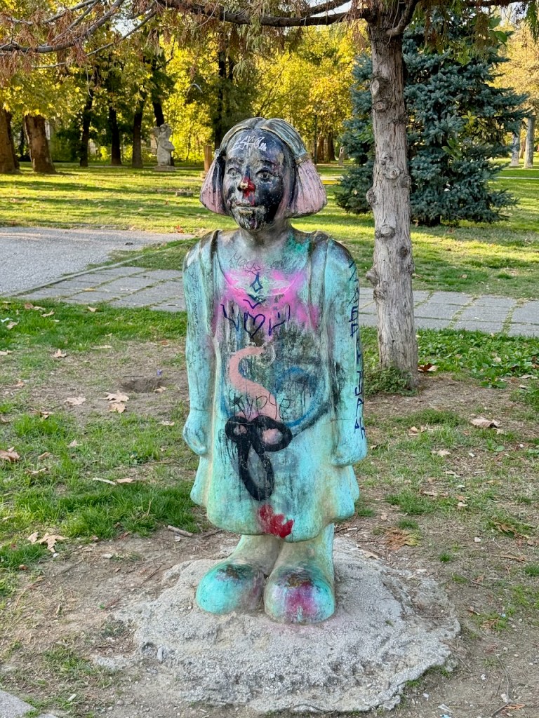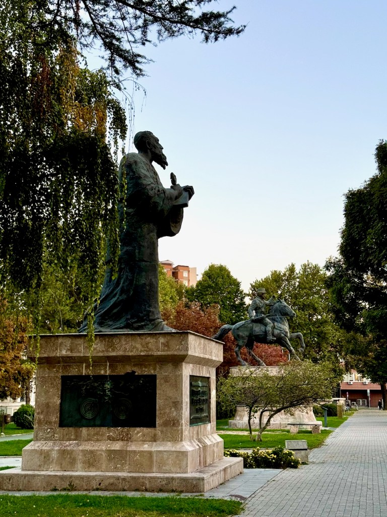 Sen jälkeen kävelee Naistaistelijoiden puistoon, joka on pieni mutta kaunis puisto. Se on alun perin omistettu naistaistelijoille ja naisille yleensäkin, mutta samalla alueella on nykyisin myös paljon miesten patsaita. Siis jälleen Skopjessa yksi paikka, jossa on patsaita, patsaita, patsaita ja …..