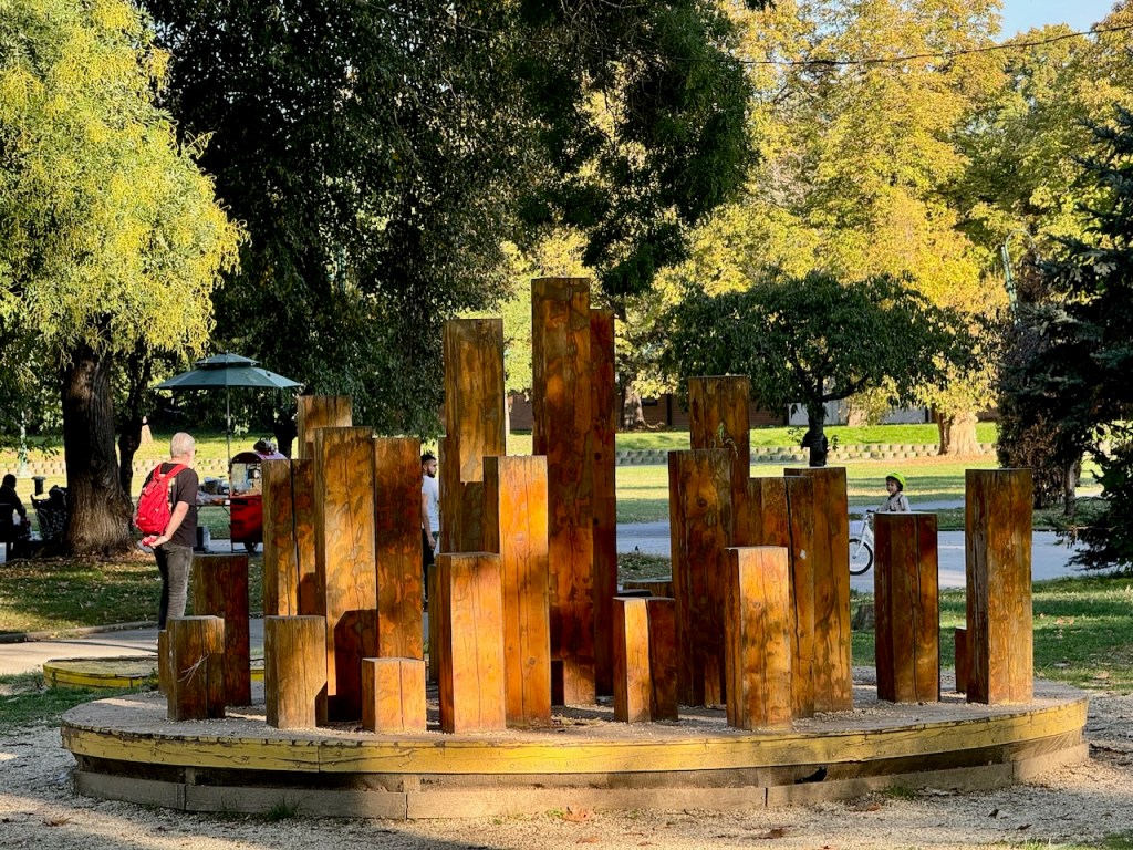 Melko lähellä oli kaupungin puutarha, sen kautta kävelimme keskikaupungin suuntaan. On niin mukavaa, että aikaa on tällaisellekin keskustan nähtävyyksien lisäksi. Täälläkin oli luonnon ja leikkipaikkojen lisäksi patsaita ja myös Äiti Teresa oli läsnä.