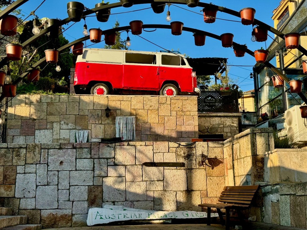 Ei ihan joka mummi ja taata aja Skopjeen tanssikisoihin. Toivottavasti itse olemme sellaisia isovanhempia! Olin joskus kymppiveemme kanssa Skopjessa, tykkäsin juuri ”mauttomuudesta”. Siis naapurimaiden kiistat turhia, joku on oikeasti Antiikin kohde, joku luo kauneutta, molemmat parempi. Äiti Teresan kotitalo jäänyt myös mieleen sykähdyttävänä.